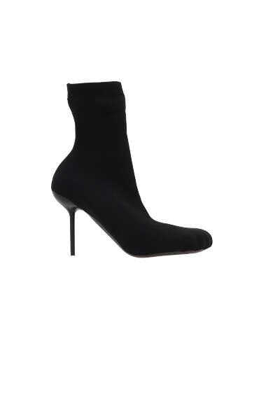 Balenciaga's ankle boots crafted in black stretch knit. Featuring five finger shape at toe, leather / fabric lining and leather sole. The design is completed by a stiletto heel.