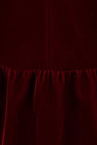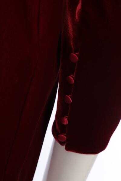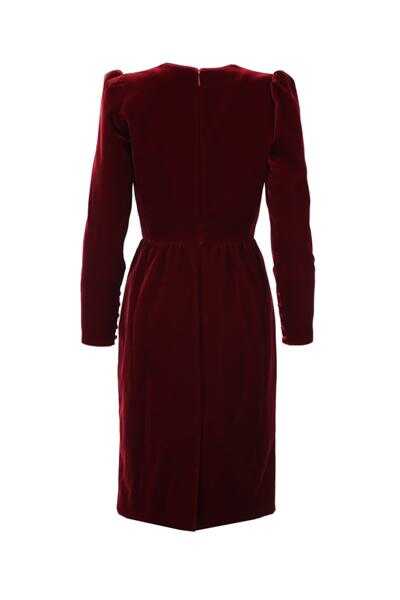 Saint Laurent's classy yet sophisticated midi dress crafted in deep red velvet. Featuring décolleté cutout, concealed zip closure along back, puff sleeves, gathered waist and pencil skirt with back vent. Lined interior.