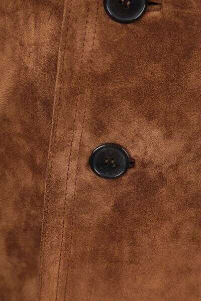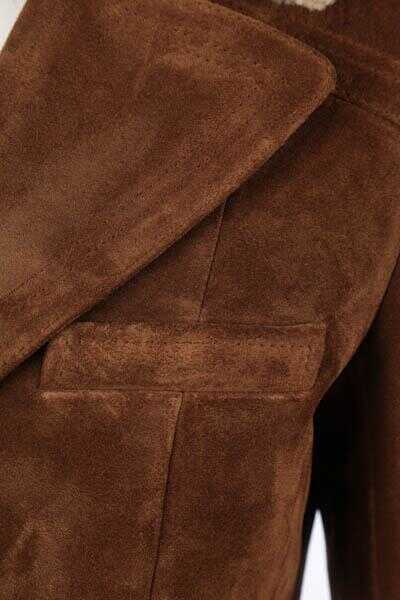 Saint Laurent's single-breasted jacket crafted in brown suede. It features notched lapel with shearling insert, front button fastening, chest welt pocket, side welt pockets, long sleeves and lined interior.