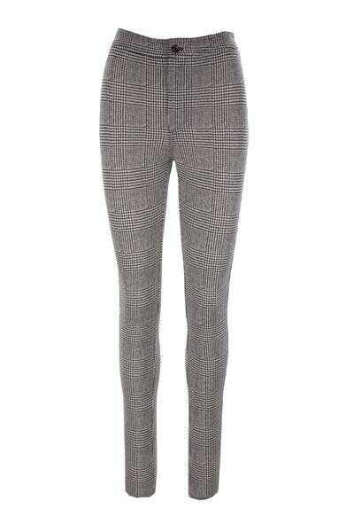Saint Laurent's slim-fit pants in Prince of Wales jersey with button / zip closure and back pockets.
