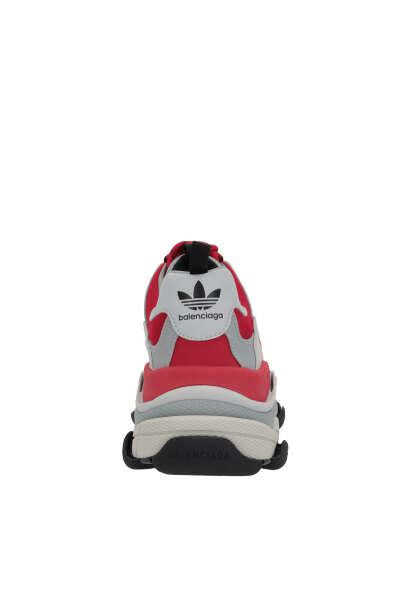 Balenciaga's low-top sneakers designed in collaboration with adidas and crafted in light grey faux leather and red mesh. Featuring lace-up closure, a round-toe silhouette, Balenciaga embroidery on side and shoes size embroidery at the tip of the toe. Fabric lining and textured rubber sole. The design is completed by 3-stripes detail on sides and Trifoil / Balenciaga logo embossed on tongue / at heel tab.