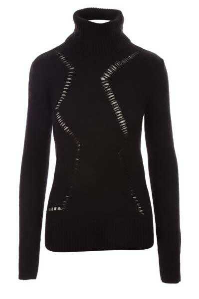 Saint Laurent's loose-fit turtleneck crafted in black wool and mohair blend with front details with distressed effect. Featuring high neck, long sleeves, ribbed edges and straight hem.