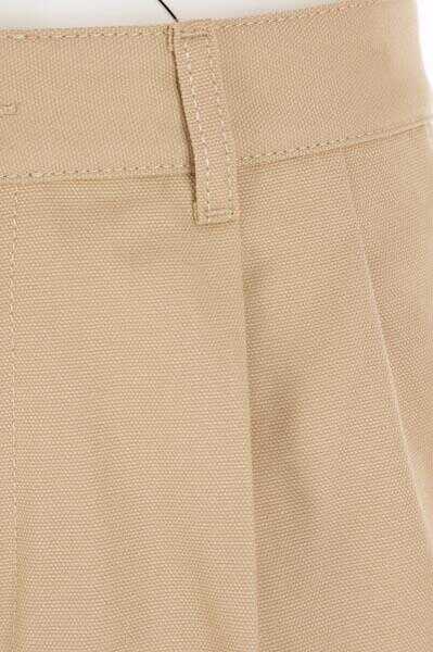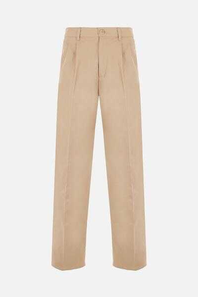 Gucci's wide-leg pants crafted in beige cotton with Gucci s'il vous plait embroidered logo patch. Featuring button / zip closure, belt loops, multiple pockets and front pinces. Unlined interior.