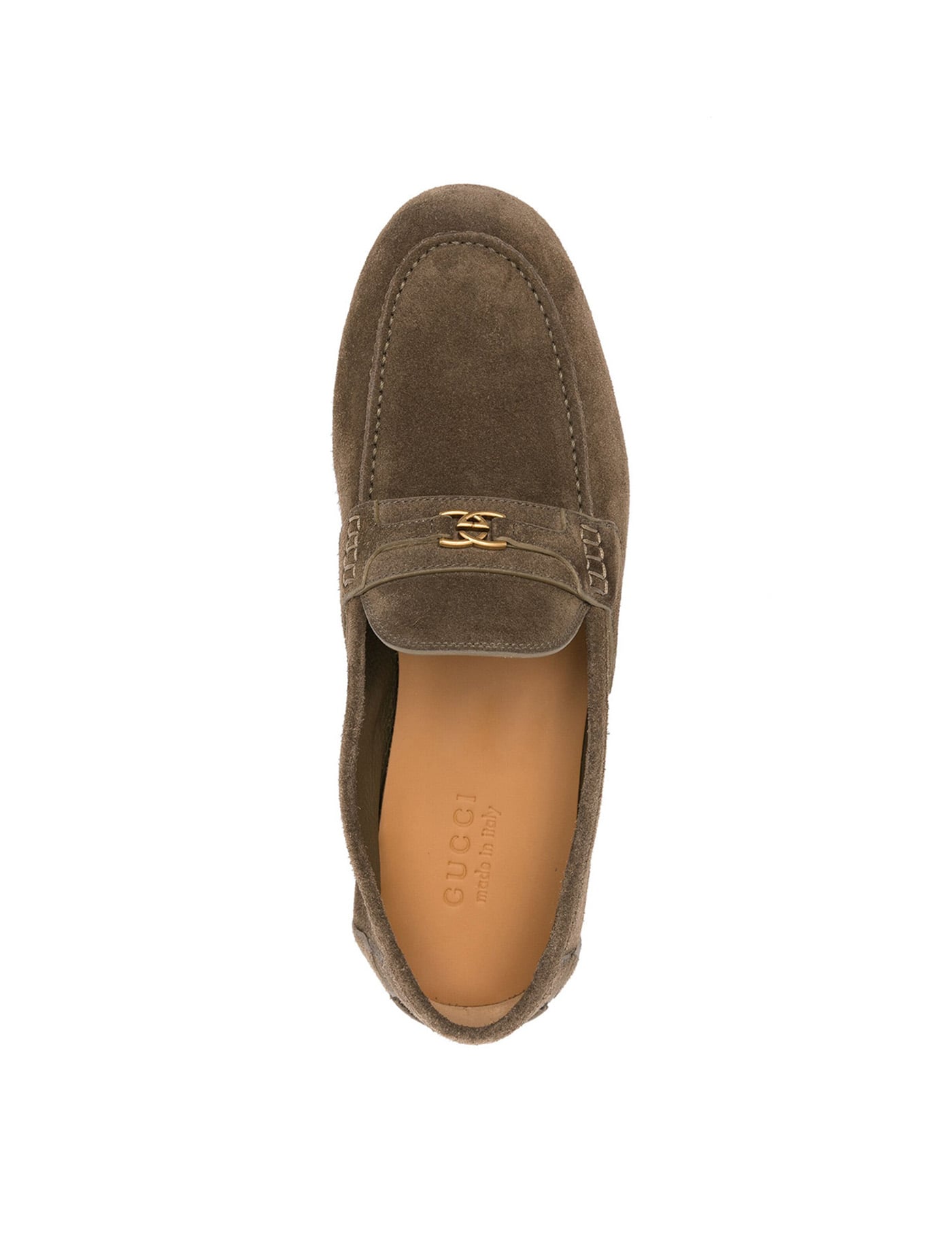 Light olive green calf suede tonal stitching round toe signature Interlocking G logo branded leather insole flat leather sole gold-tone hardware slip-on style LENGTH: 140.0 Centimetres WIDTH: 140.0 Centimetres