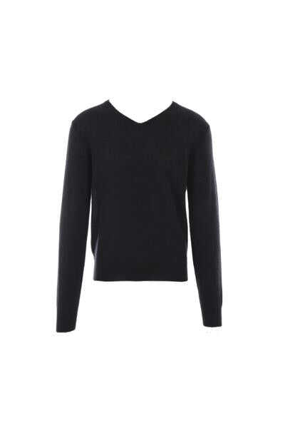 Saint Laurent’s pullover crafted in black cashmere and silk knit. Featuring crew neck, long sleeves and ribbed edges.