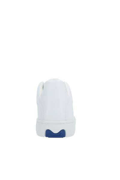 Burberry's low-top sneakers crafted in white smooth leather. Featuring lace-up closure, a round-toe silhouette, fabric lining and rubber sole. The design is completed by the unmistakable Equestrian Knight detail embossed on side.