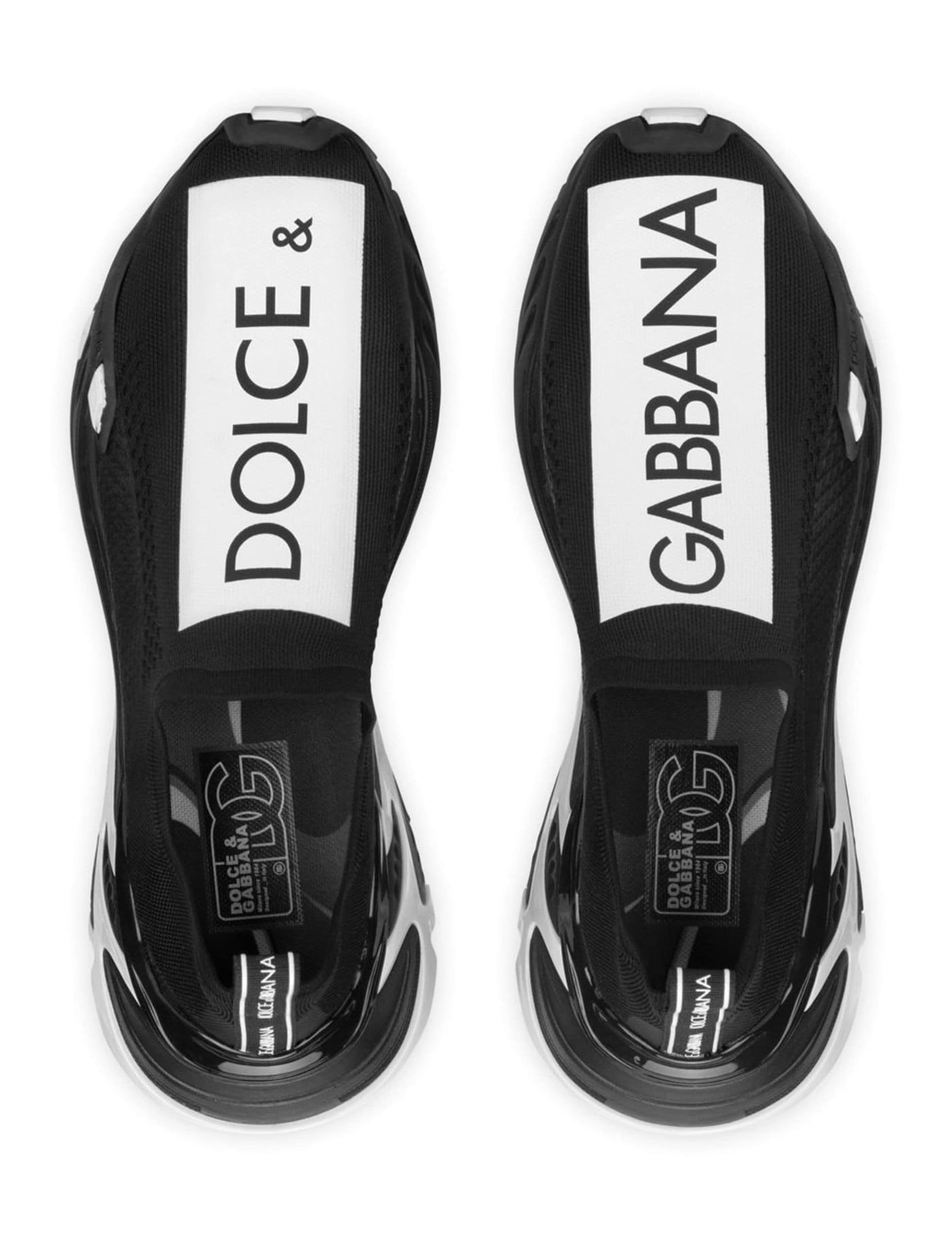 Black/white colour-block design slip-on style mesh panelling logo-tape detailing round toe pull-tab at the heel this piece fits small – take one size up