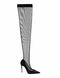 Black tulle netting pointed toe thigh-high branded leather insole 105mm high stiletto heel with silver-tone logo plaque leather outsole slip-on style this piece comes complete with a protective dust bag.
