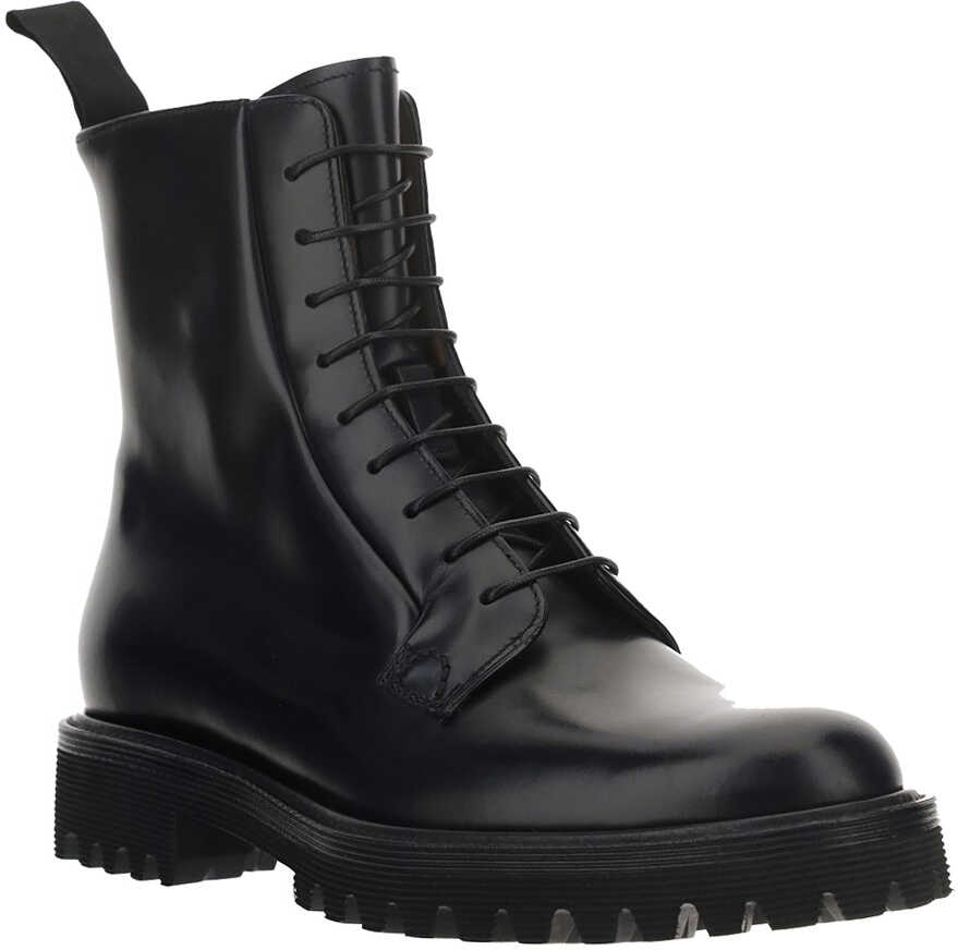 Calfskin Rois Bootie by Church's, side panel zip fastening, lace-up front fastening, heel pull, round toe, shiny leather design.