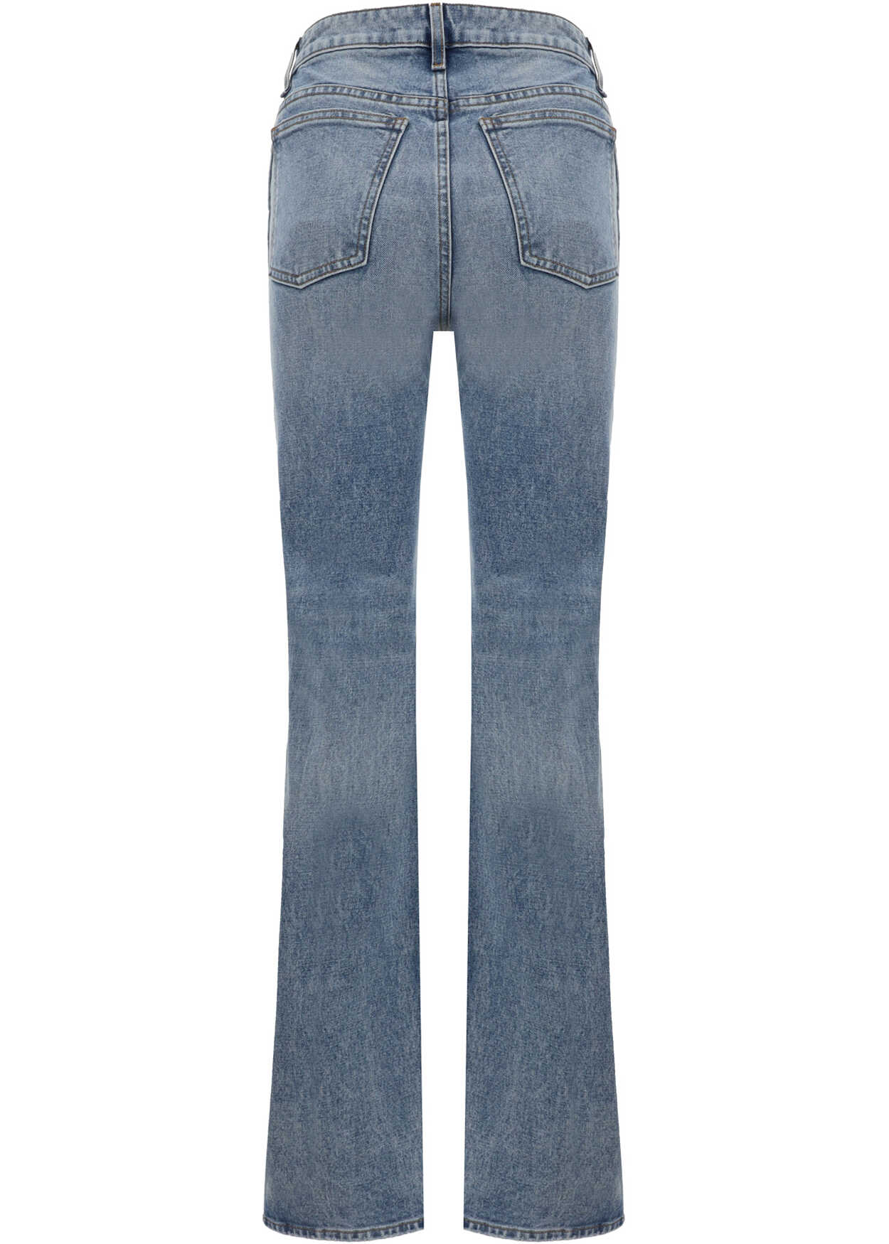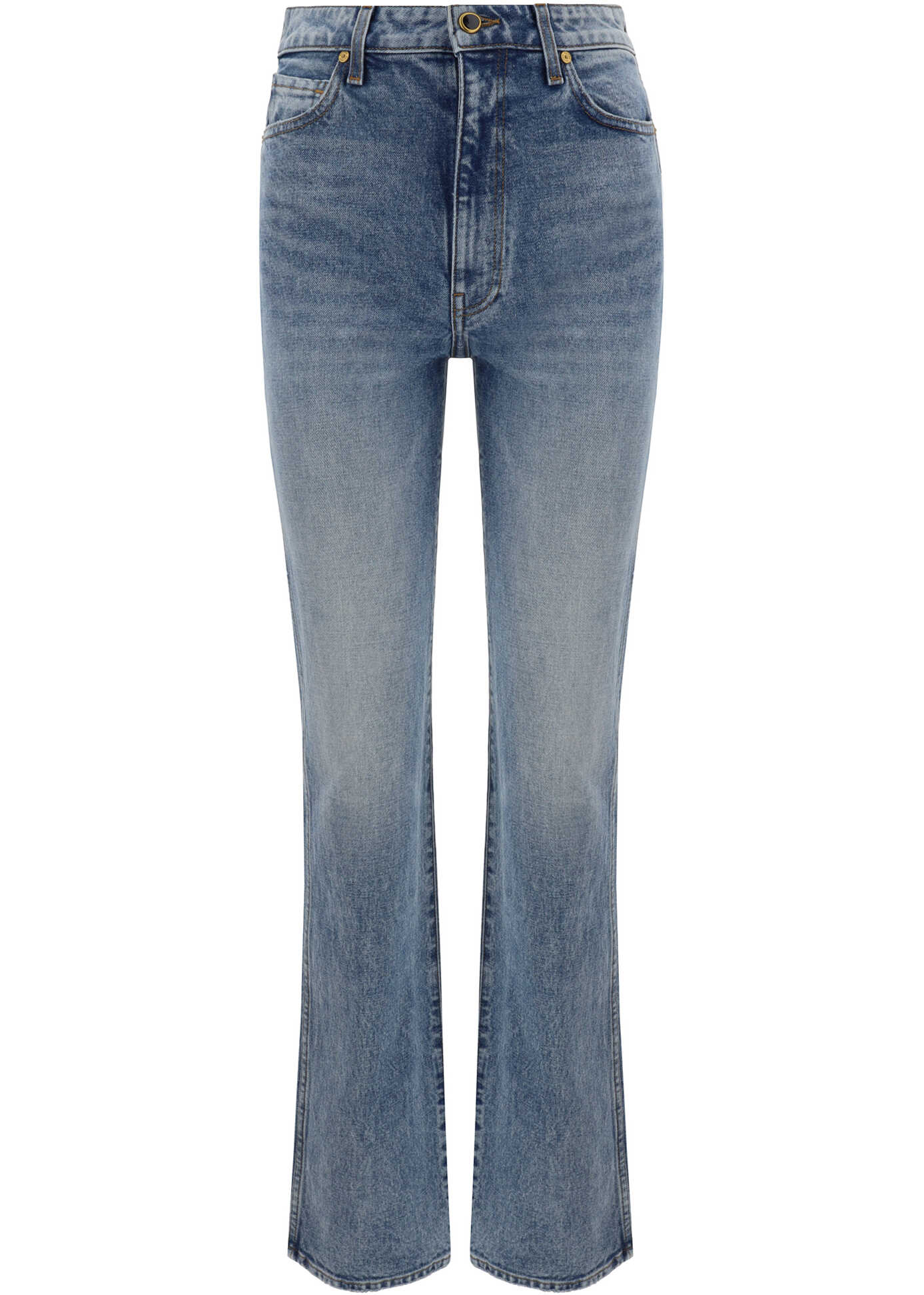 Cotton Danielle Jeans by Khaite, five-pocket straight style, front button and zipper closure, waistband loops.