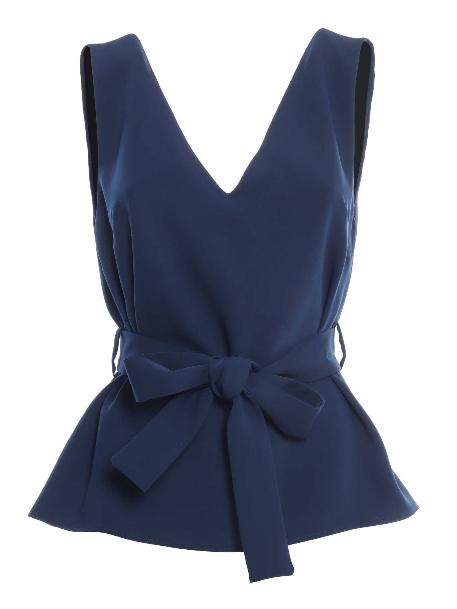 Blouse in anti-wrinkle fabric, sleeveless, double sided V-neck, supplied belt