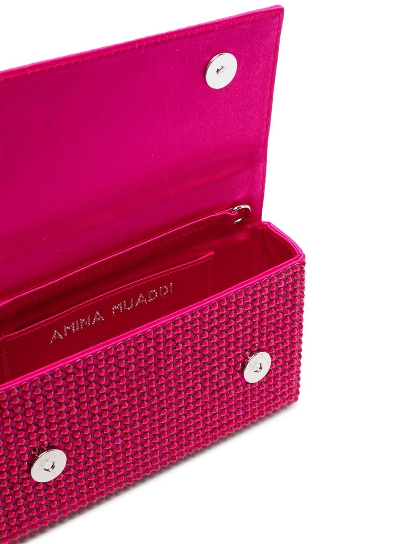 An emblematic model from Amina Muaddi, the Paloma bag is recognisable for its boxy silhouette and crystal-embellished design. Embodying these classic features, this iteration is distinguishable for its raspberry pink and romantic completion.