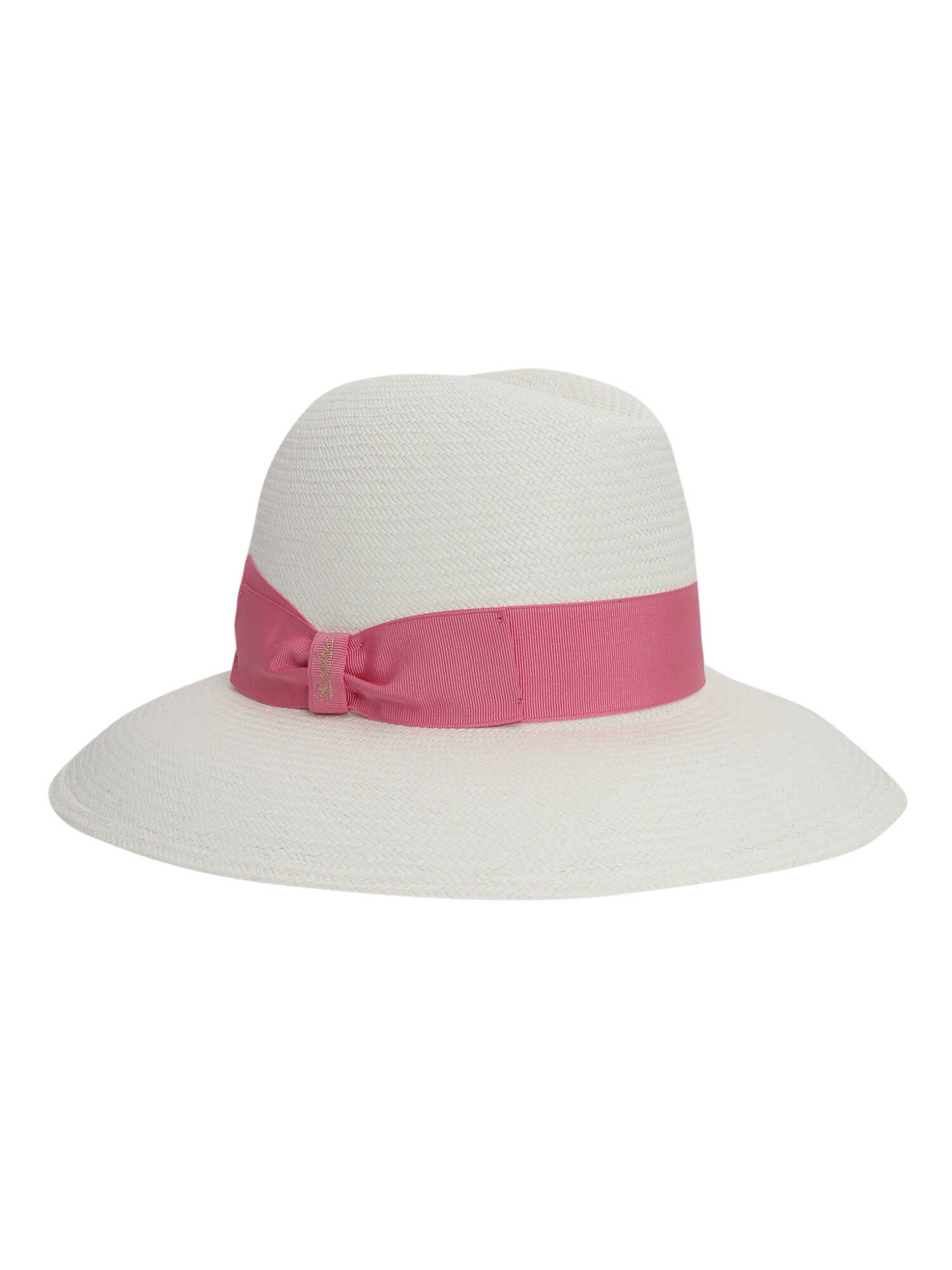Straw hat, 4 cm pink grosgrain band, 9 cm wide brim