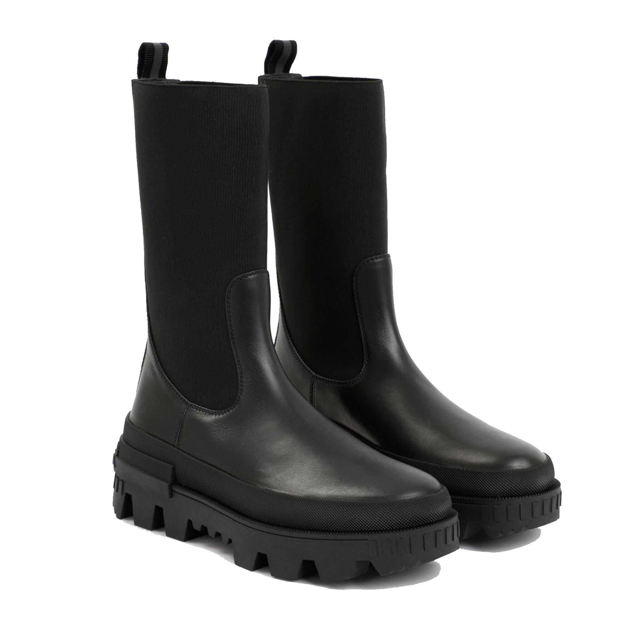 Step out in style with these Moncler leather logo boots. Made from 100% calf leather, these ankle boots feature leather lining and insole, a rubber sole, and elastic side inserts for a comfortable fit. The black color and relief logo detail add a touch of sophistication to any outfit. Perfect for any occasion, these boots are a must-have for any fashion-forward woman's wardrobe. Shop now and elevate your style game!