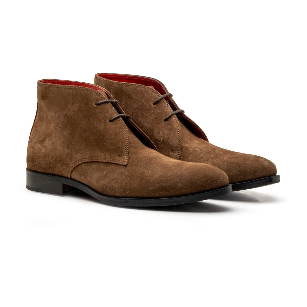 Take your style to the next level with these brown ankle boots from ALEXANDER 1910. Expertly crafted in Italy using only the finest calf leather, these boots feature a soft suede upper and a lining in very soft carmine red calfskin. The refined form and carmine red sole with anti-slip insert and Vibram Millerighe sole make these boots perfect for any occasion. With the Alexander 1910 logo embossed on the sole and laces with 2 pairs of holes, these boots are a must-have for any fashion-forward man. Order now and step out in style!