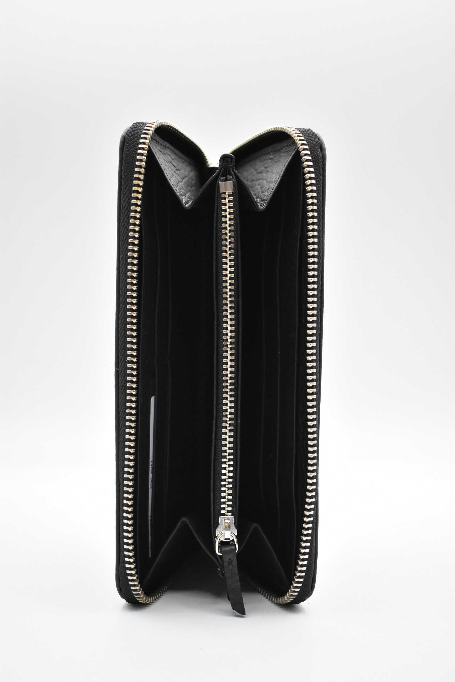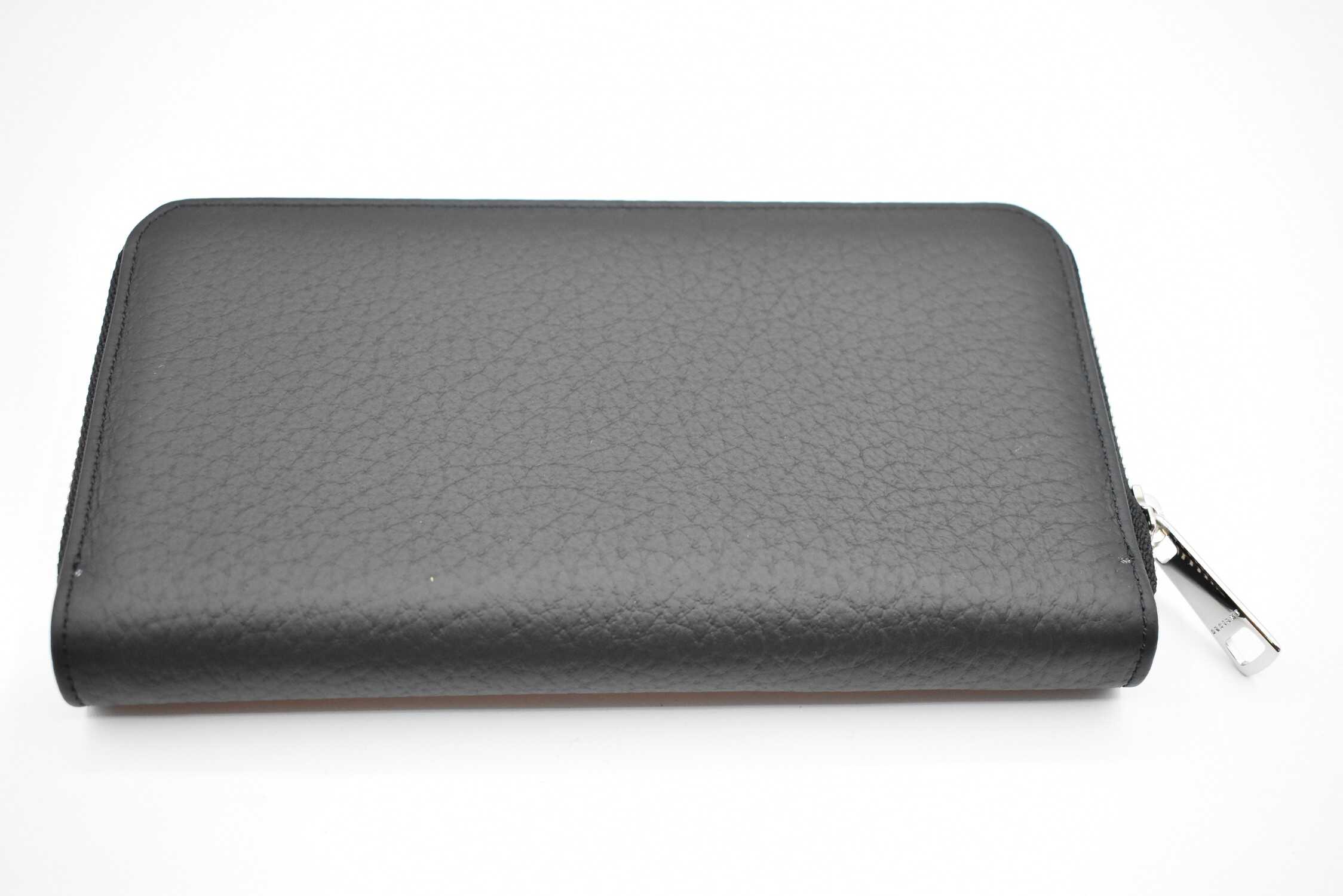 Indulge in luxury with this stunning black Orciani wallet. Crafted with the finest materials, this accessory boasts a sleek design that exudes elegance. With ample space for all your essentials, this wallet is perfect for the modern woman who appreciates style and functionality. Elevate your accessory game with Orciani.