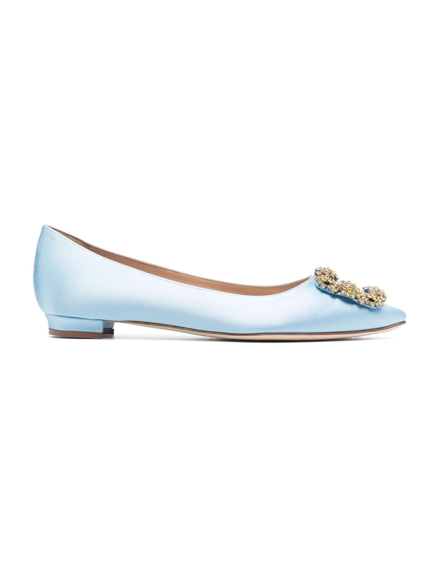 jewel buckled satin ballerina shoes