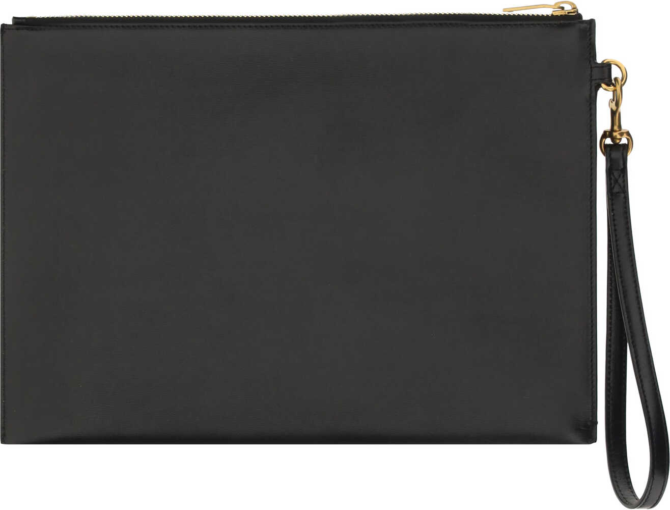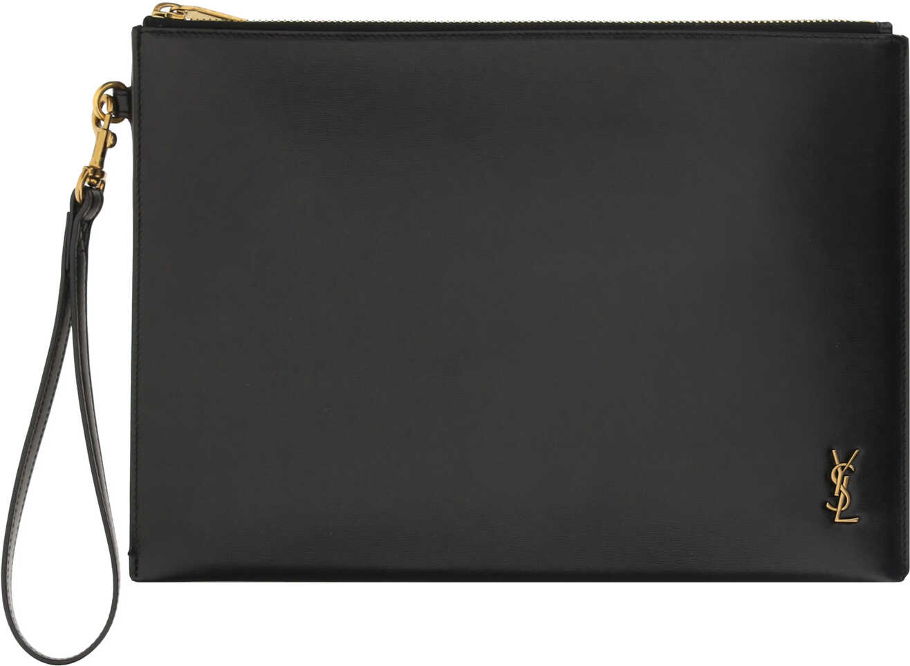 Calfskin IPad Holder by Saint Laurent, top zip closure, internal slot holder, iconic logo embossed on the front, leather pull to carry it by hand.
