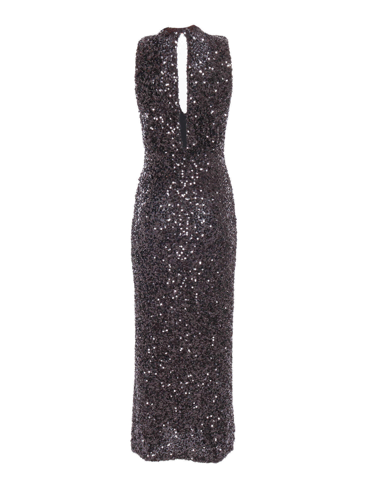 Sequined stretch dress, sleeveless, cut out on the back, V-neck