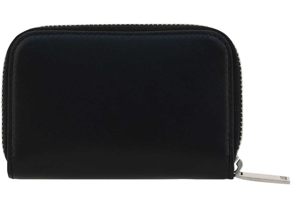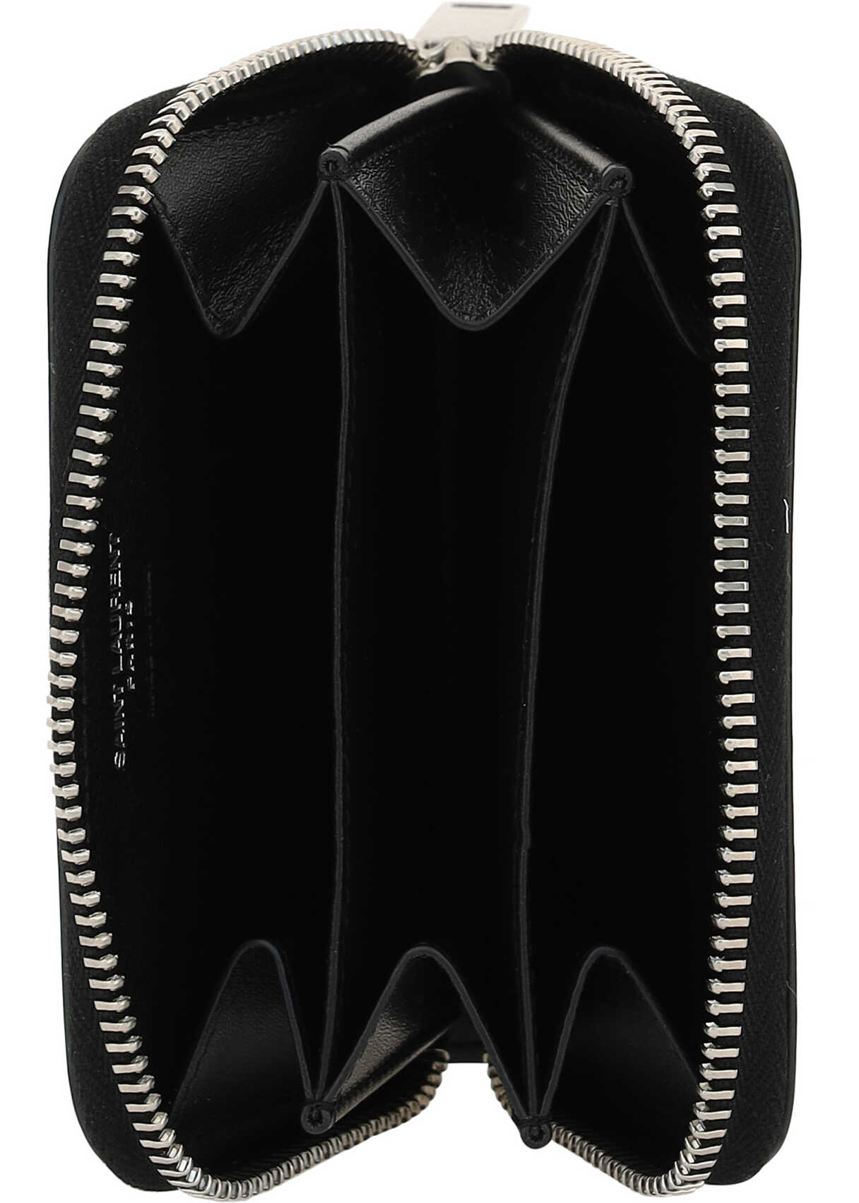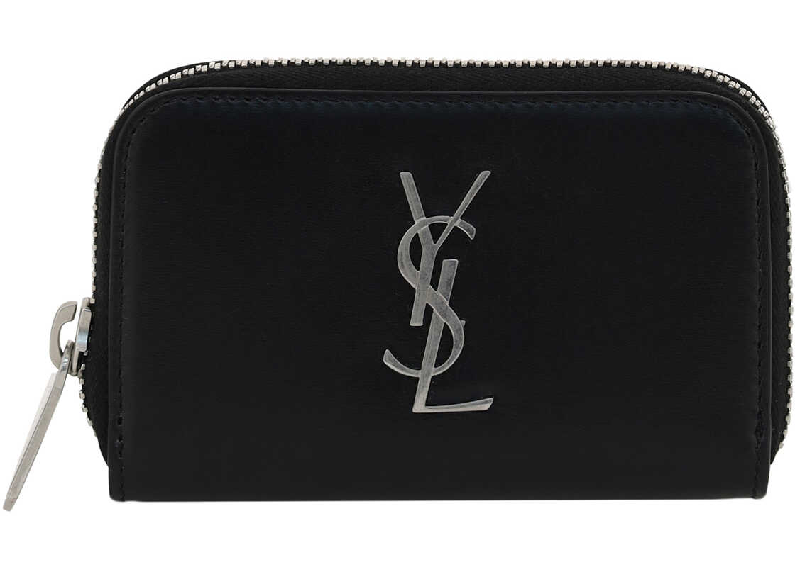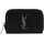 Calfskin Coin Purse by Saint Laurent, zip-around closure, triple coin compartment, contrasting embossed iconic YSL logo on the front.