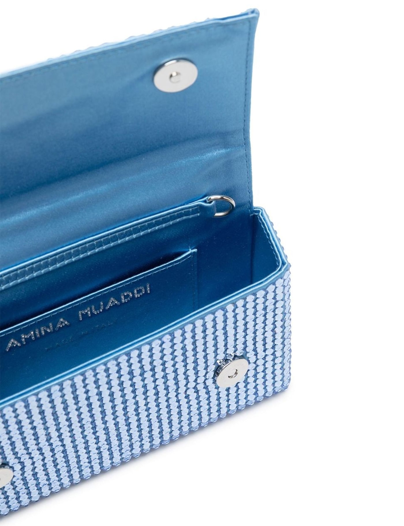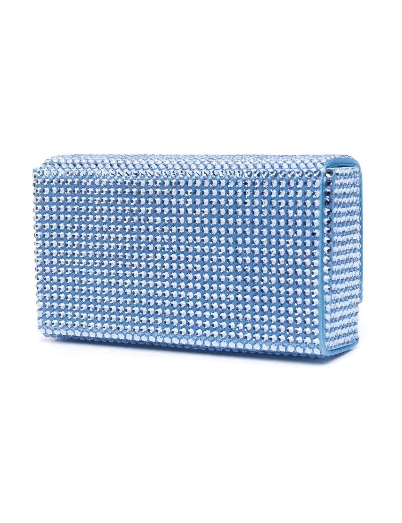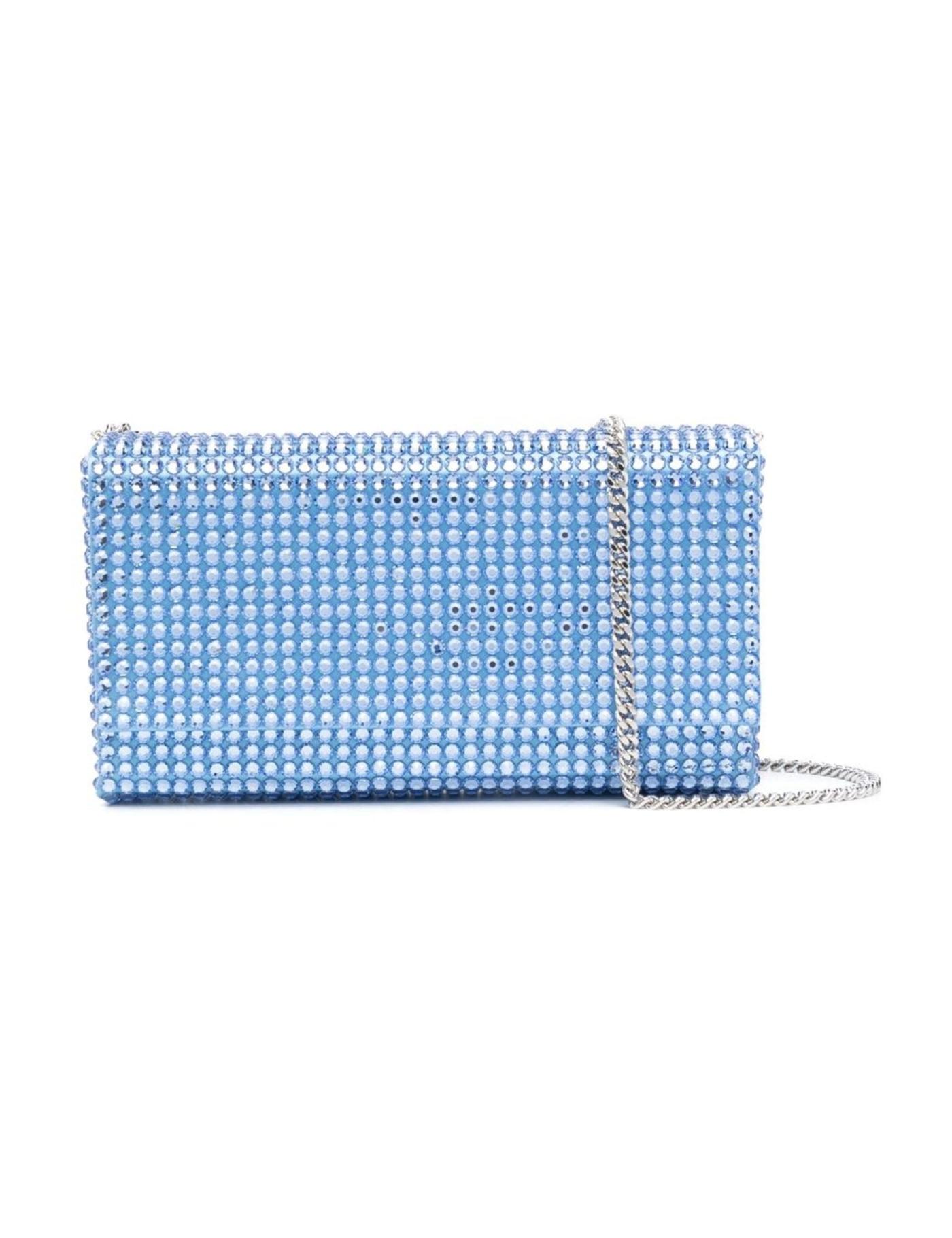 A signature Amina Muaddi design, the Paloma bag is defined by its compact silhouette and shimmering finish. Keeping this traditional features, this iteration is adorned with sky-blue crystals throughout.