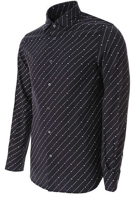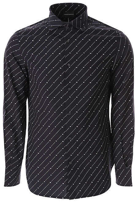 Discover the Shirt Emporio Armani, a stylish addition to your wardrobe. This black shirt features a French collar, button closure, and long sleeves with buttoned cuffs. The printed EA logo and iconic eagle all-over add a touch of sophistication. Made from a blend of 50% cotton and 50% lyocell, this shirt is comfortable and durable. Perfect for men, it belongs to the Clothing > T-Shirts & Polos category. Upgrade your style with this high-quality Lyocell Cotton shirt from the renowned brand EMPORIO ARMANI.