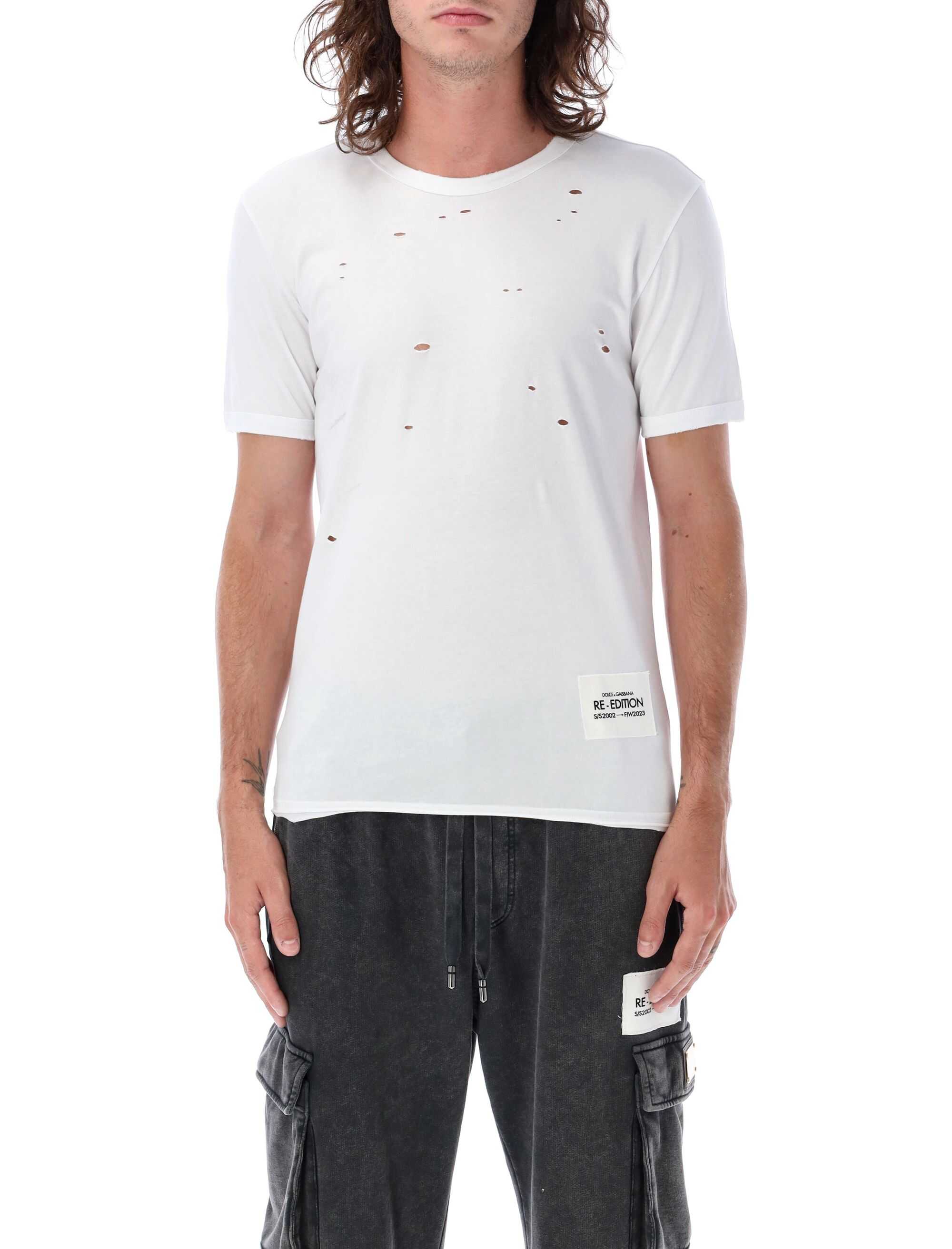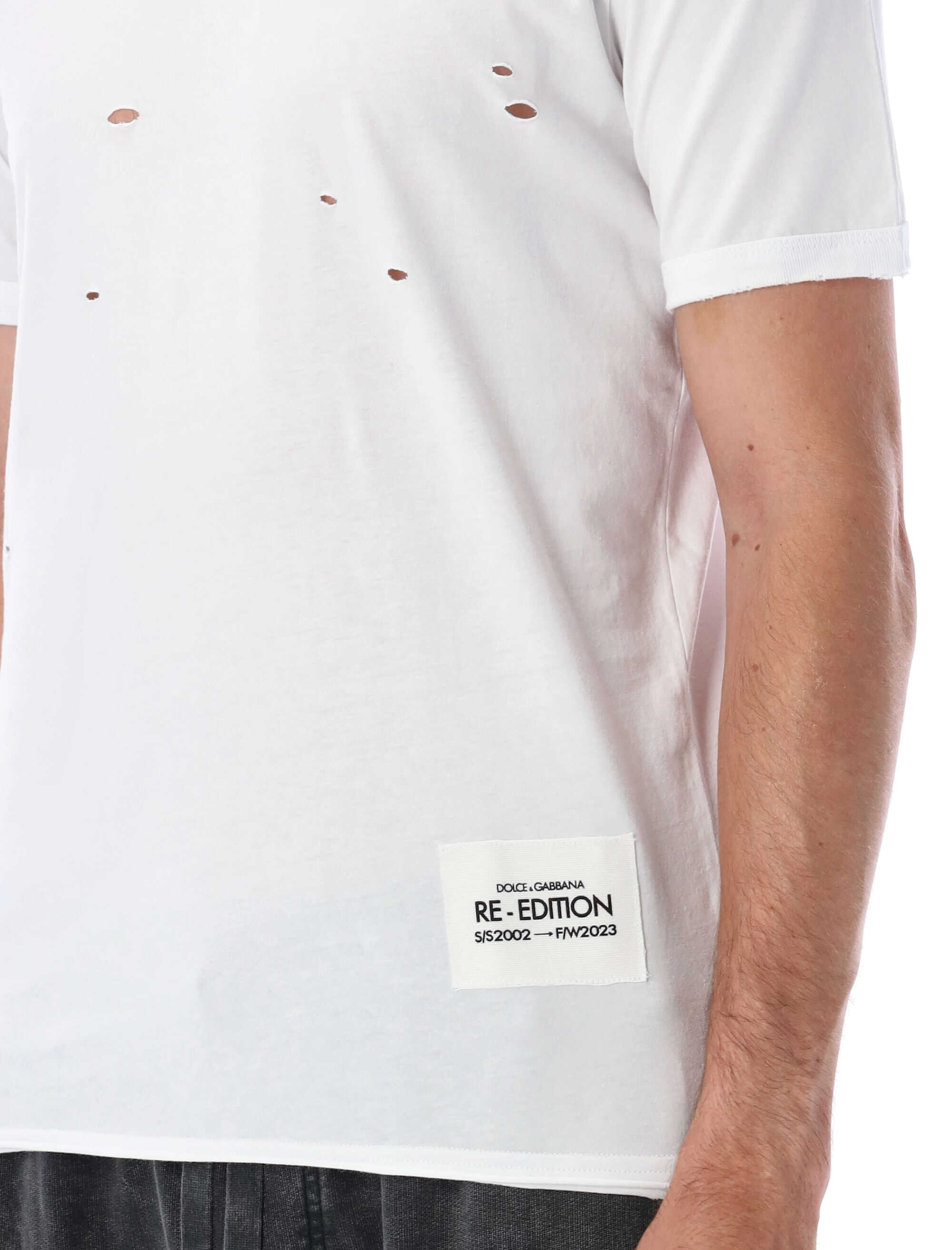 Introducing the Dolce&Gabbana Broken T-Shirt in WHITE color. Made from 100% cotton, this t-shirt features a crewneck, short sleeves, and a Dolce&Gabbana logo patch in front. With its strips details all-around and straight hem, this t-shirt is the perfect addition to your wardrobe. Model is 1.90 m tall and he is wearing size 48. Upgrade your style with this high-quality and fashionable t-shirt from DOLCE & GABBANA.