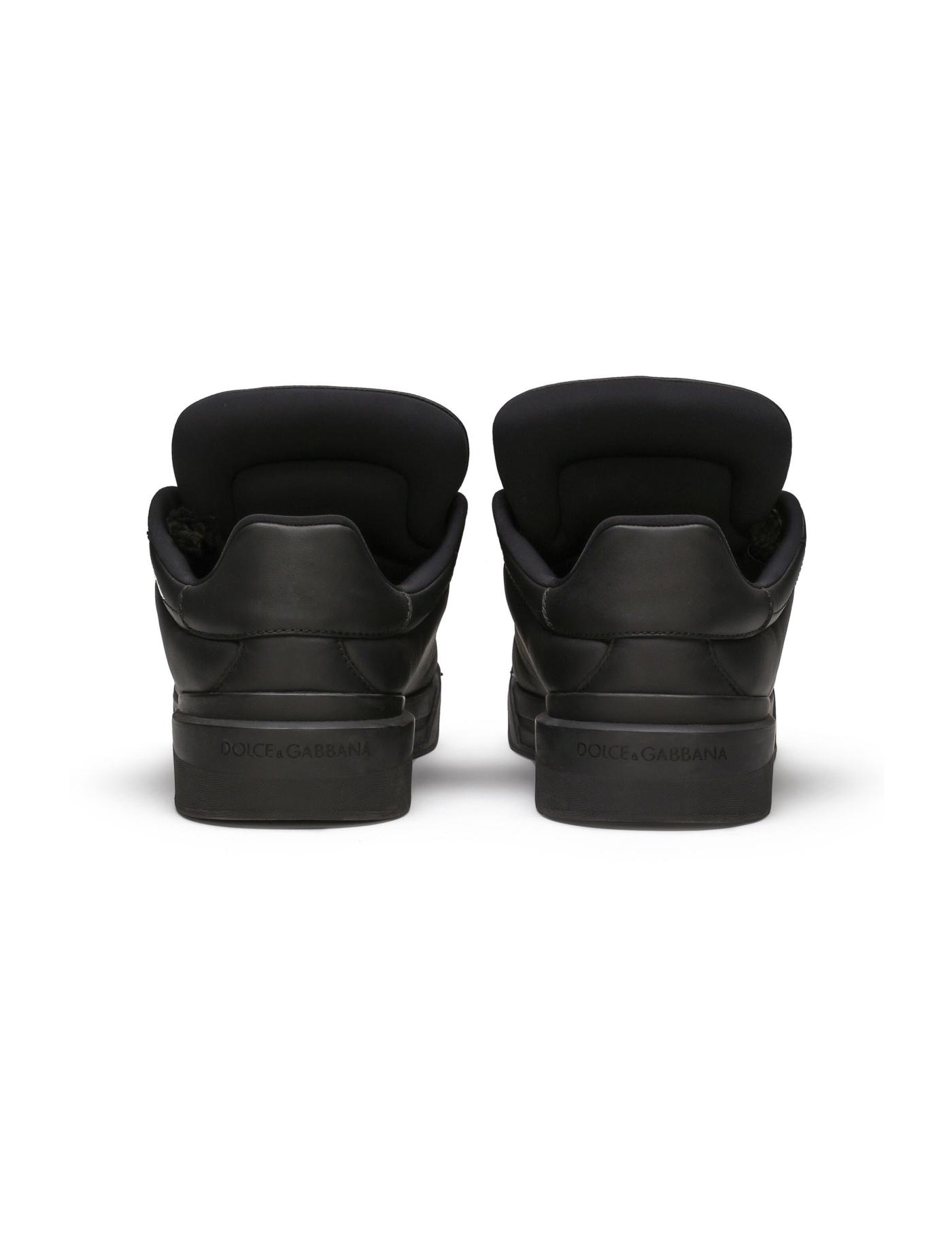Dolce & Gabbana presents an updated iteration of its Portofino sneaker. The classic low-top silhouette features signature details such as the embossed logo to the rear, while this version is defined by its striking black colour and chunky lace detailing.