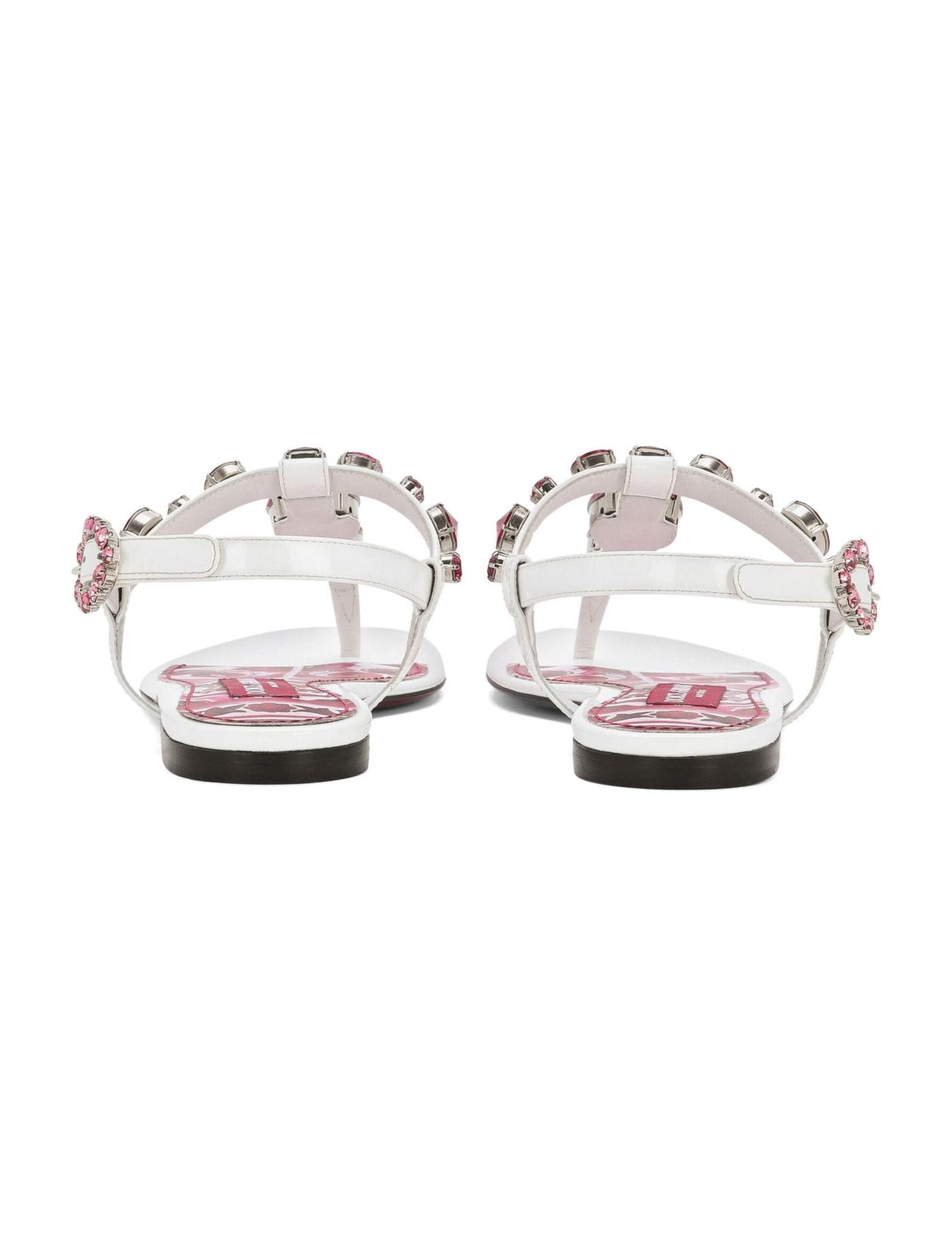Dolce & Gabbana combines Italian heritage with standout detailing in these leather sandals. The insole is decorated with a pink iteration of the Majolica print – which is inspired by the pottery and tiles found in the Sicilian city of Caltagirone – while the straps are embellished with assorted crystals.