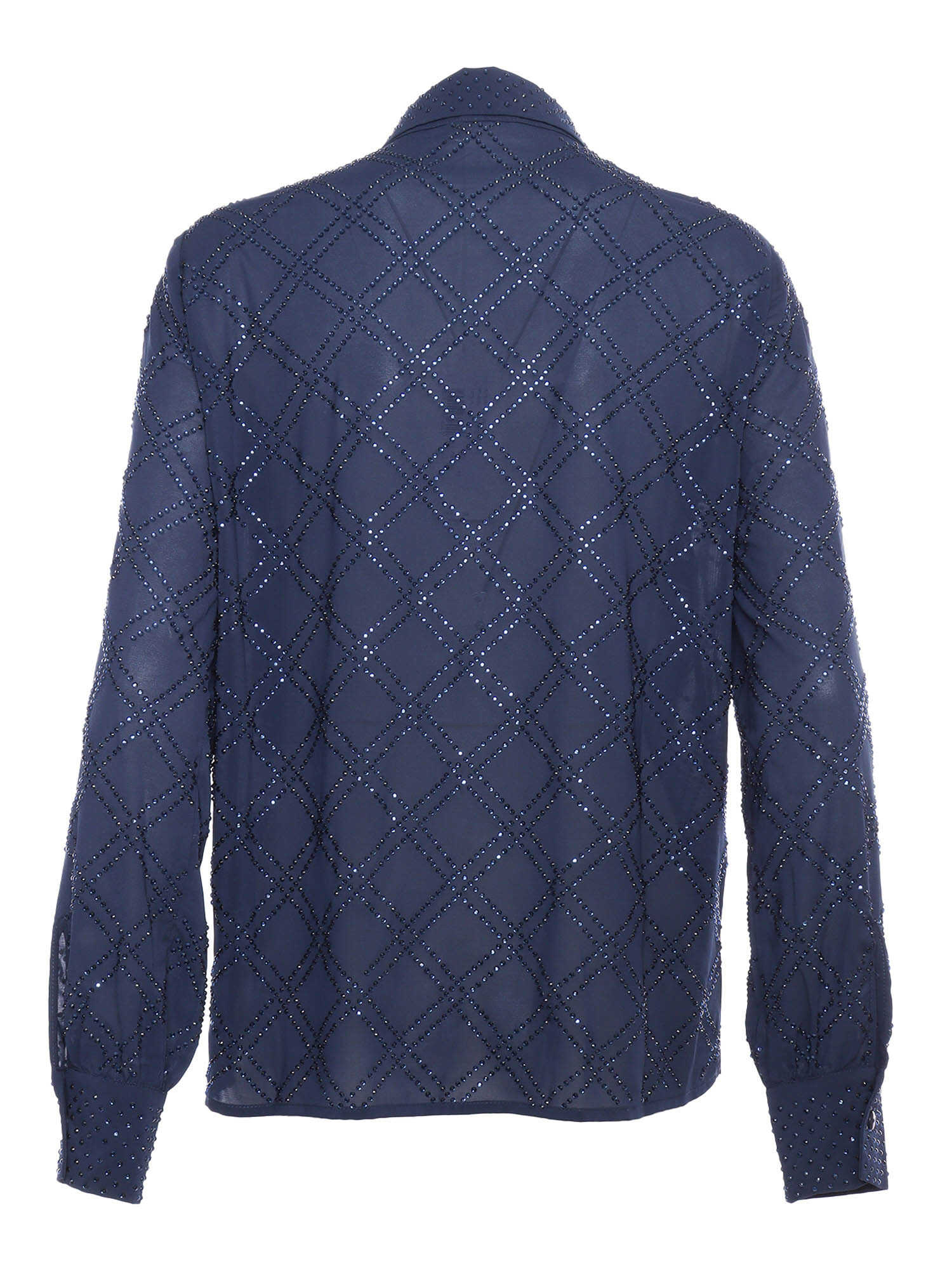 Shirt with all-over crystals applique, classic collar, buttoned cuffs