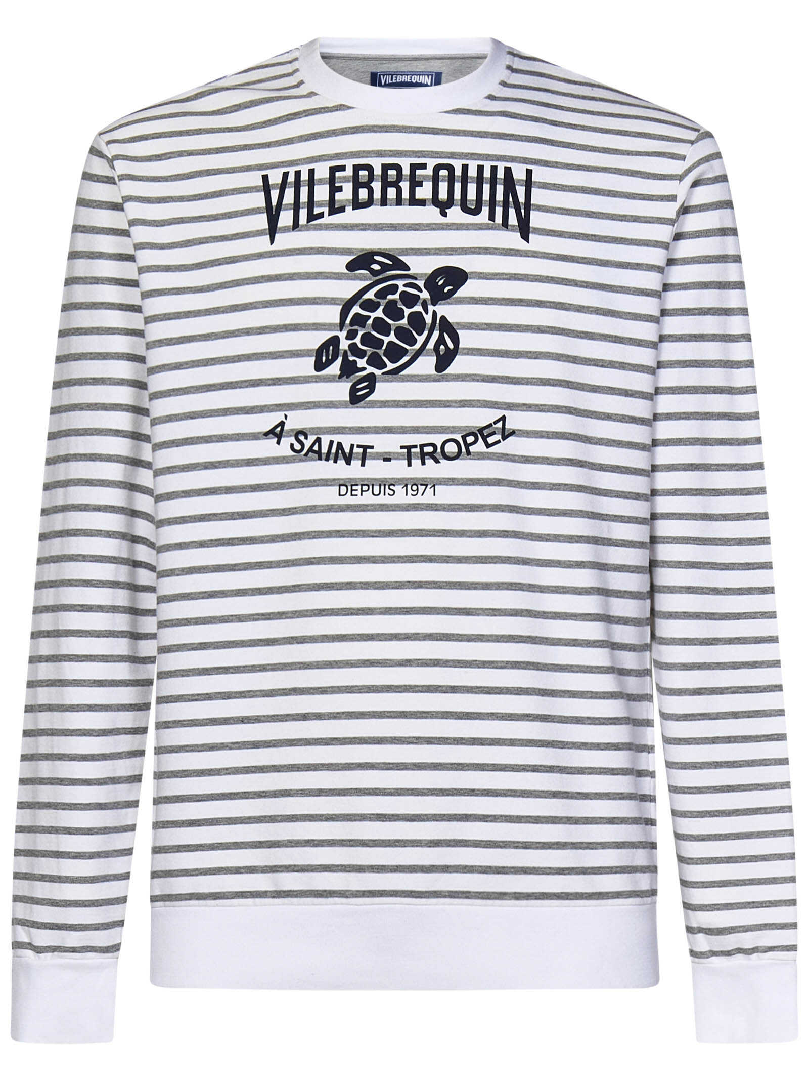 Striped white and grey stretch cotton crewneck sweatshirt with logo print.