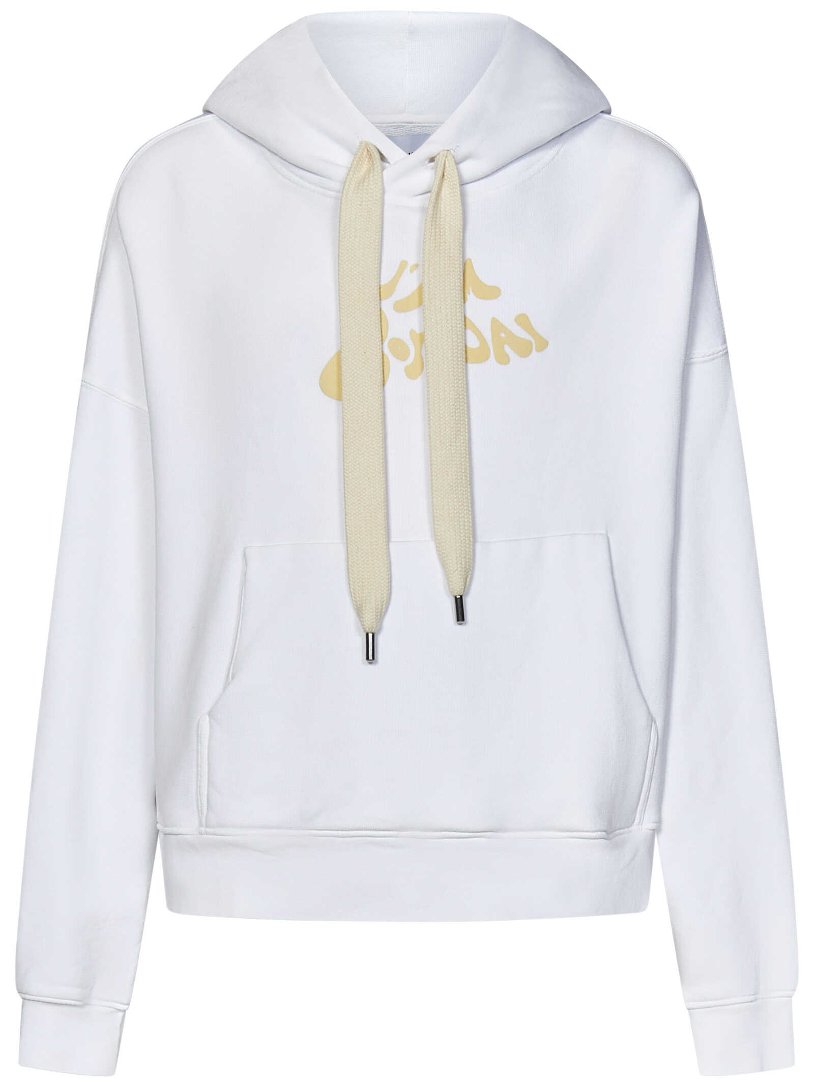 White cotton hooded sweatshirt with contrasting logo on the chest and maxi drawstring.