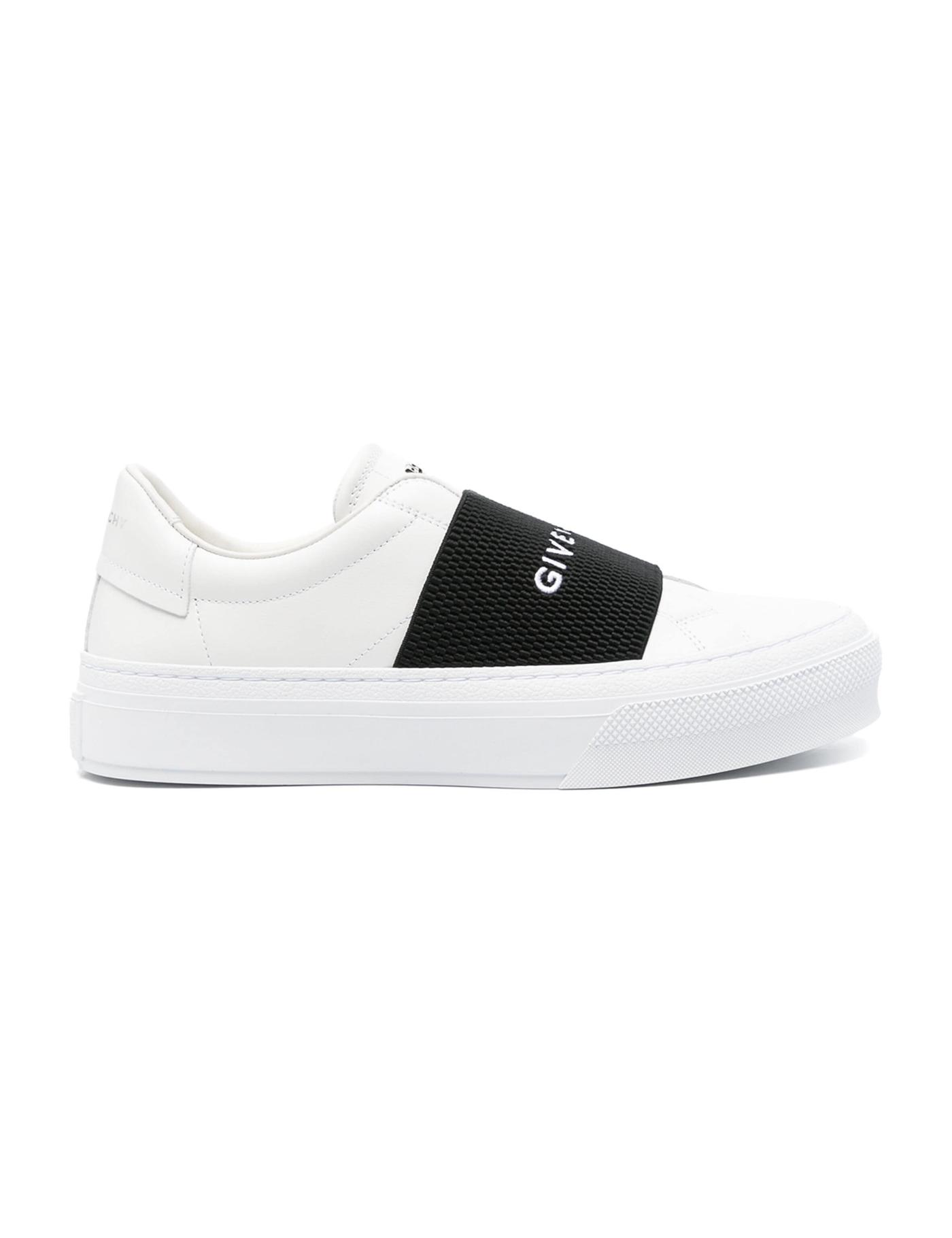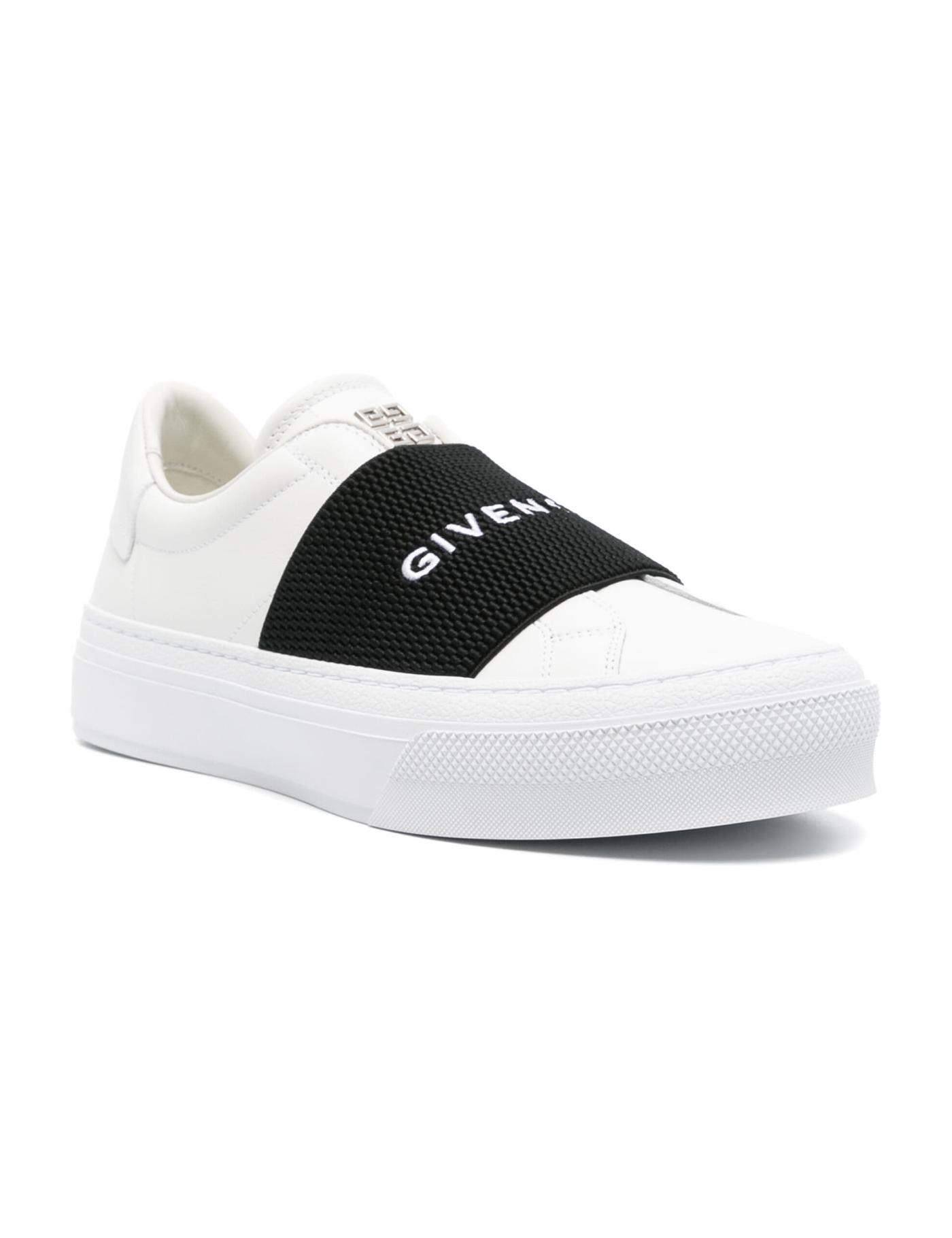 Givenchy is respected in the high-fashion and streetwear industries for its distinctively Parisian sense of style, as seen with these AW22 logo-webbing low-top sneakers, they feature the houses signature logo-print to the front.