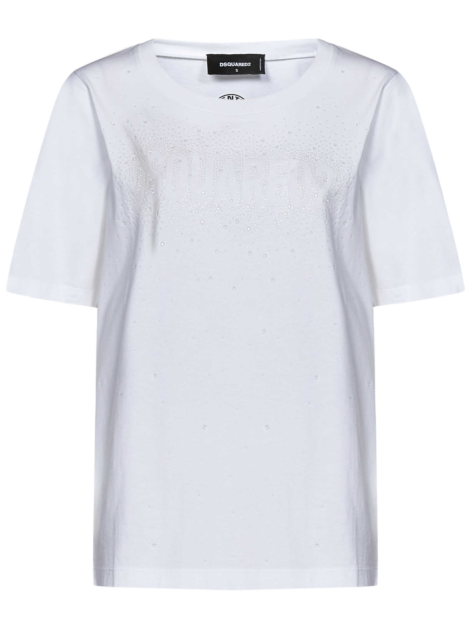 Easy Fit T-shirt in white cotton jersey with tone-on-tone crystal logo on the front.