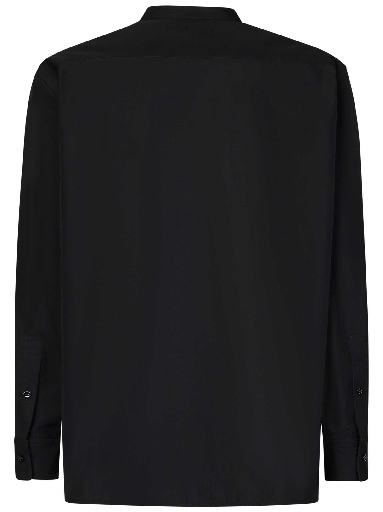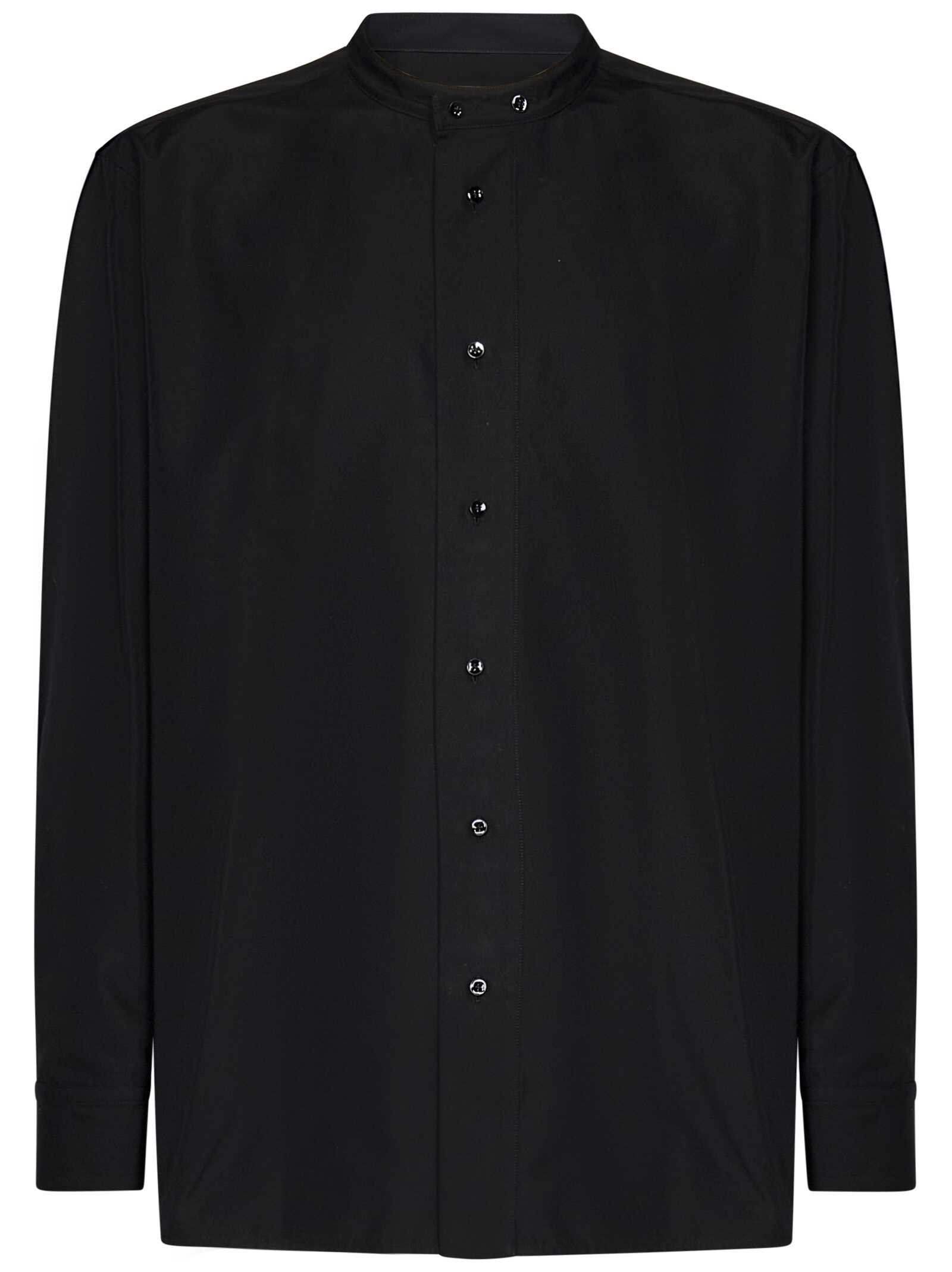 Monday P.M S boxy fit shirt in black cotton ottoman with Korean collar.