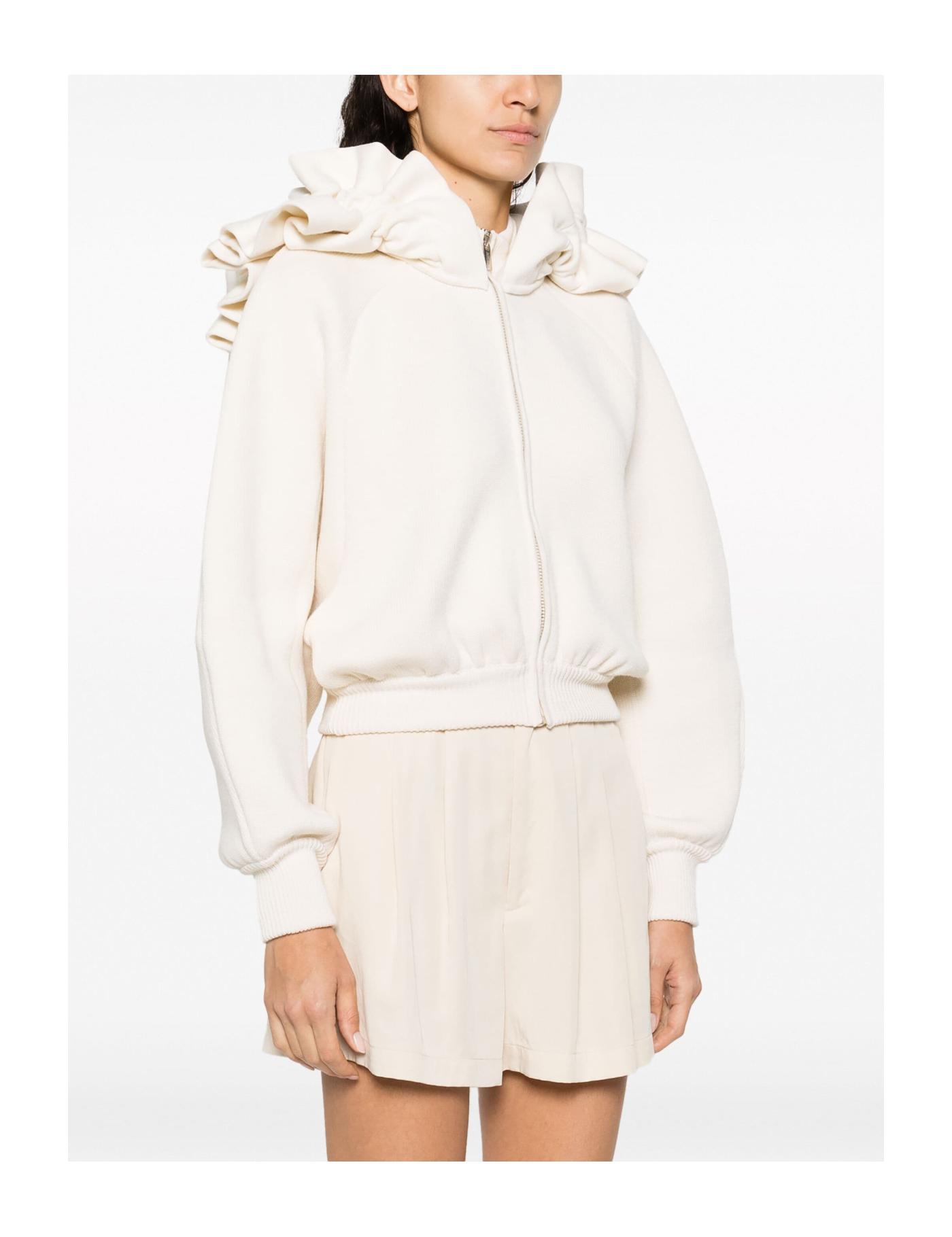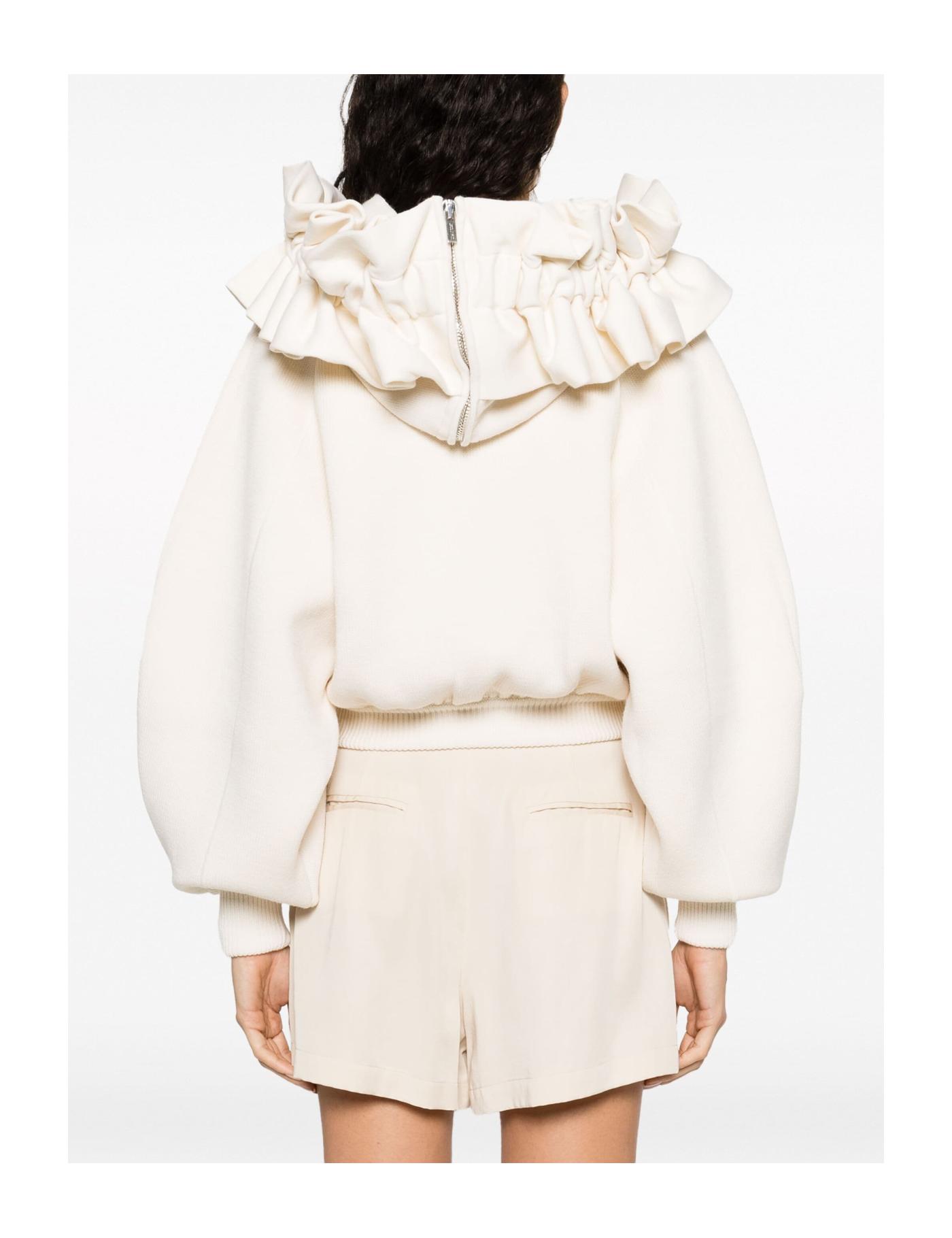 Jacquemus puts a lively twist on a classic hoodie with this La Maille Crinoline style. It’s spun from an off-white wool blend and framed with an exaggerated ruffle-trimmed hood.