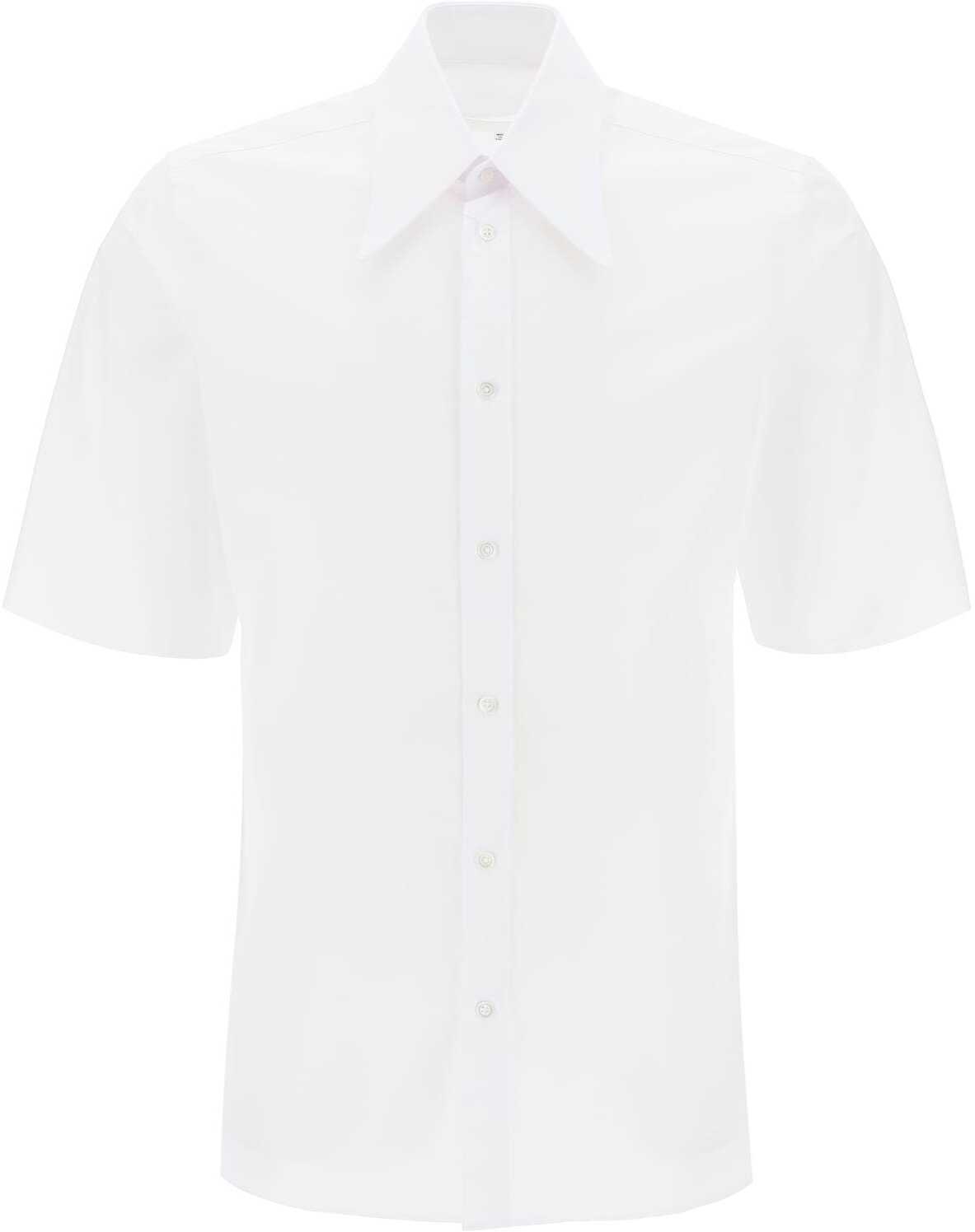 This Maison Margiela shirt is made of pure cotton poplin and features a stiff collar and short sleeves with raw edges. It has mother-of-pearl buttons, side slits, and the iconic Four Stitches on the back of the neck. Regular fit. The model is 187 cm tall and wears size 40.
