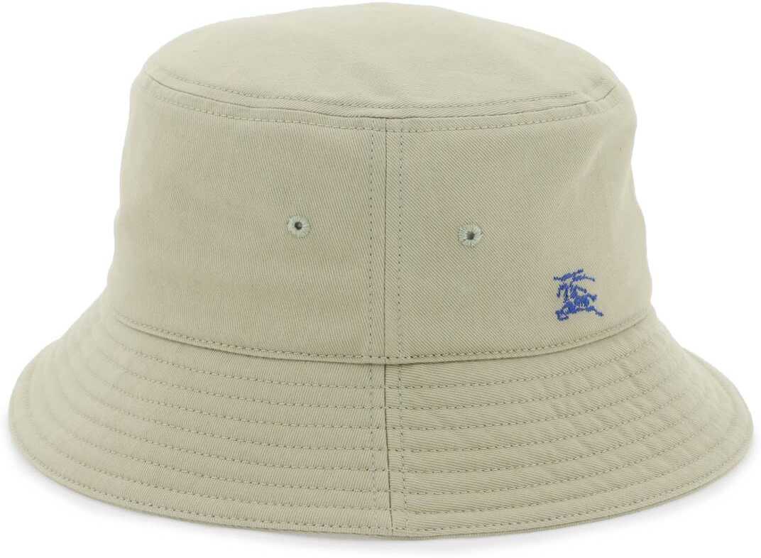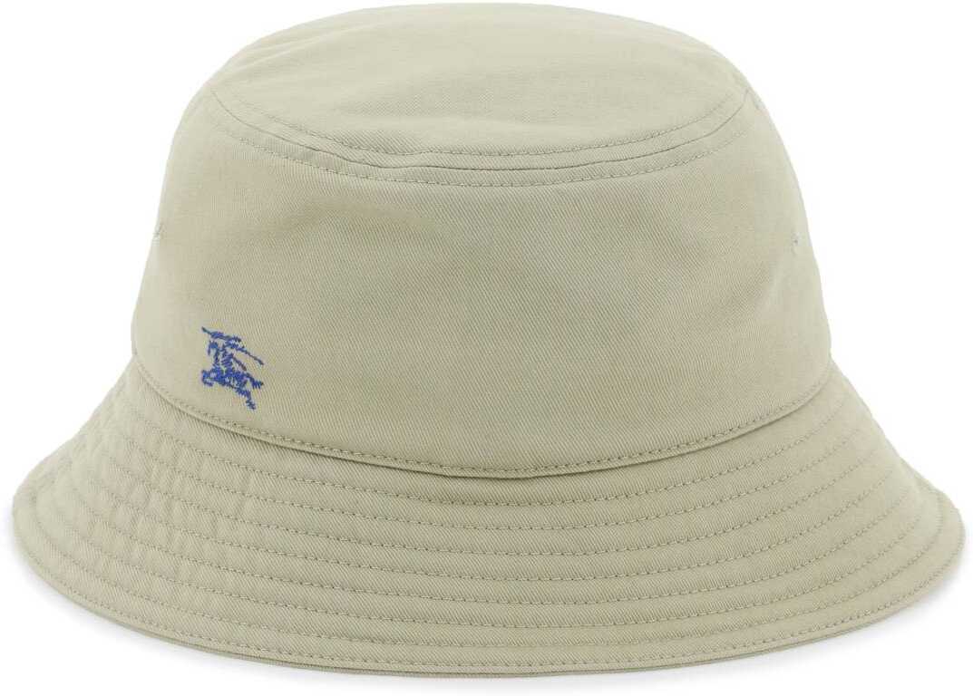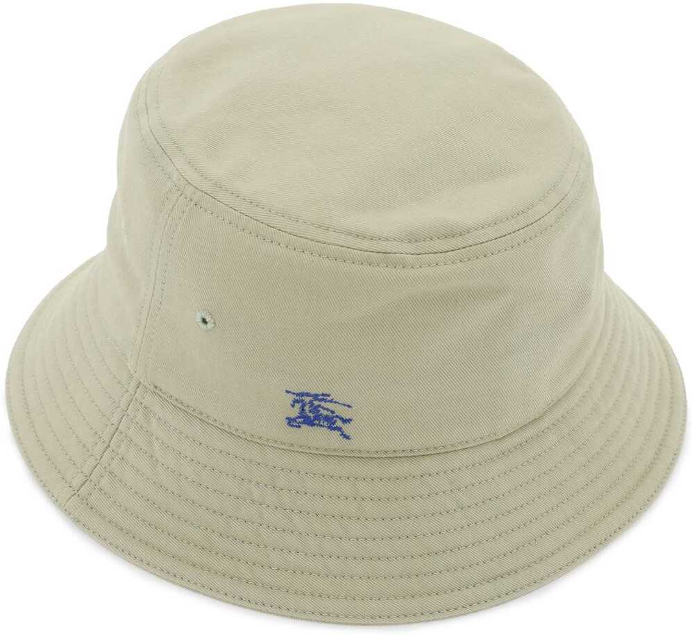 Burberry bucket hat crafted in pure cotton twill and decorated with contrasting Equestrian Knight Design embroidery at back. Topstiched brim, embroidered eyelets and unlined interior. The pictured item is a size M.