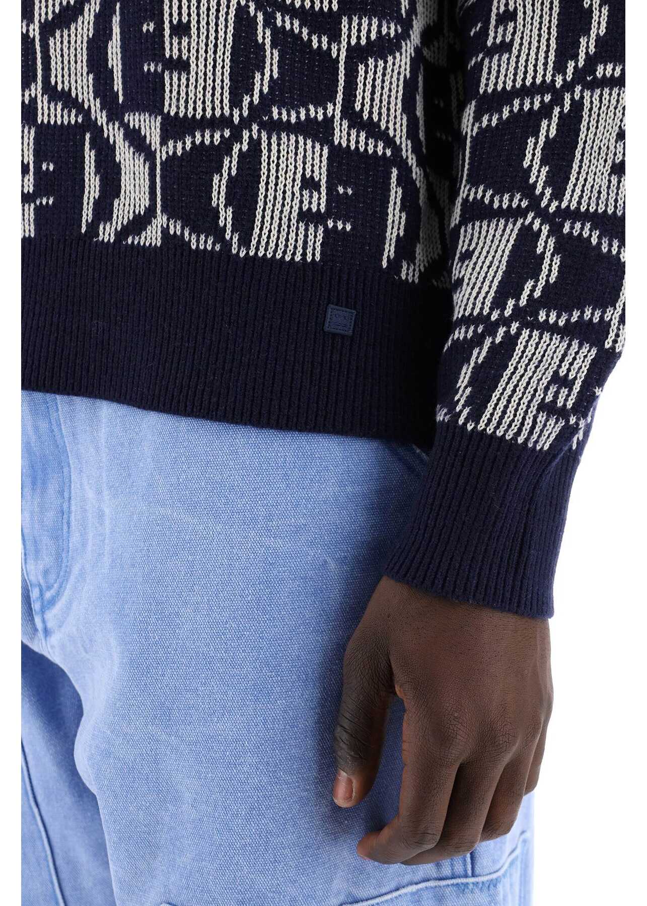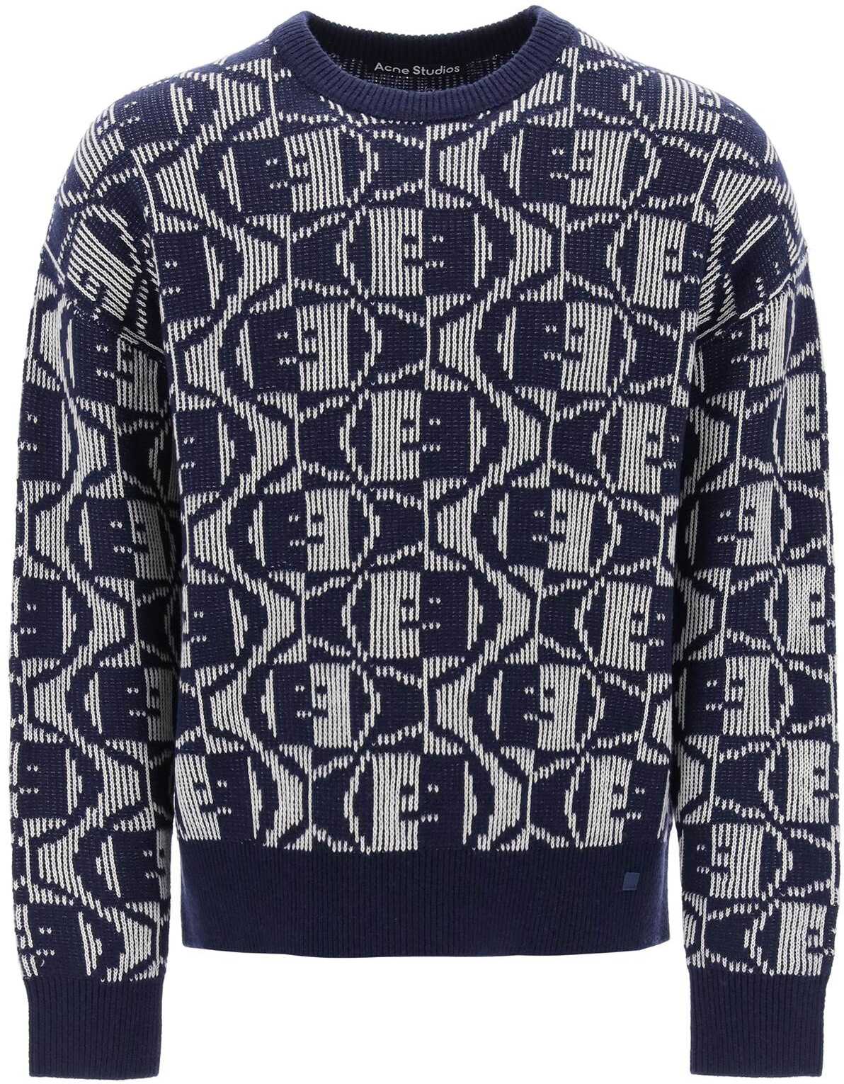 This Acne Studios crewneck sweater is made from organic and sustainable wool and cotton knit, featuring an all-over jacquard Face logo design. It is complete with a micro Face logo patch on the bottom and finished with ribbed edges. The relaxed fit makes it comfortable to wear. The model is 177 cm tall and wears size S. The male model is 187 cm tall and wears size M.