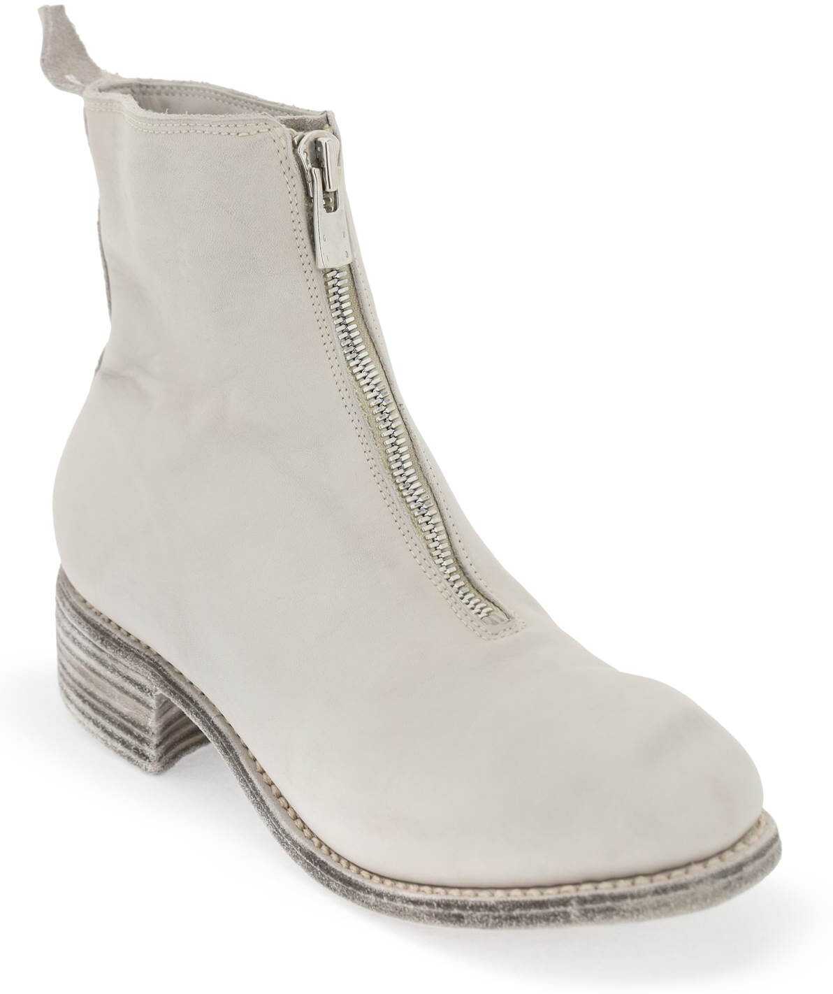 Guidi ankle boots in vintage-effect horse leather with oxidized-effect silver metal front zip closure. Leather lining, leather sole. They come with canvas shopping bag and spare Vibram rubber soles.