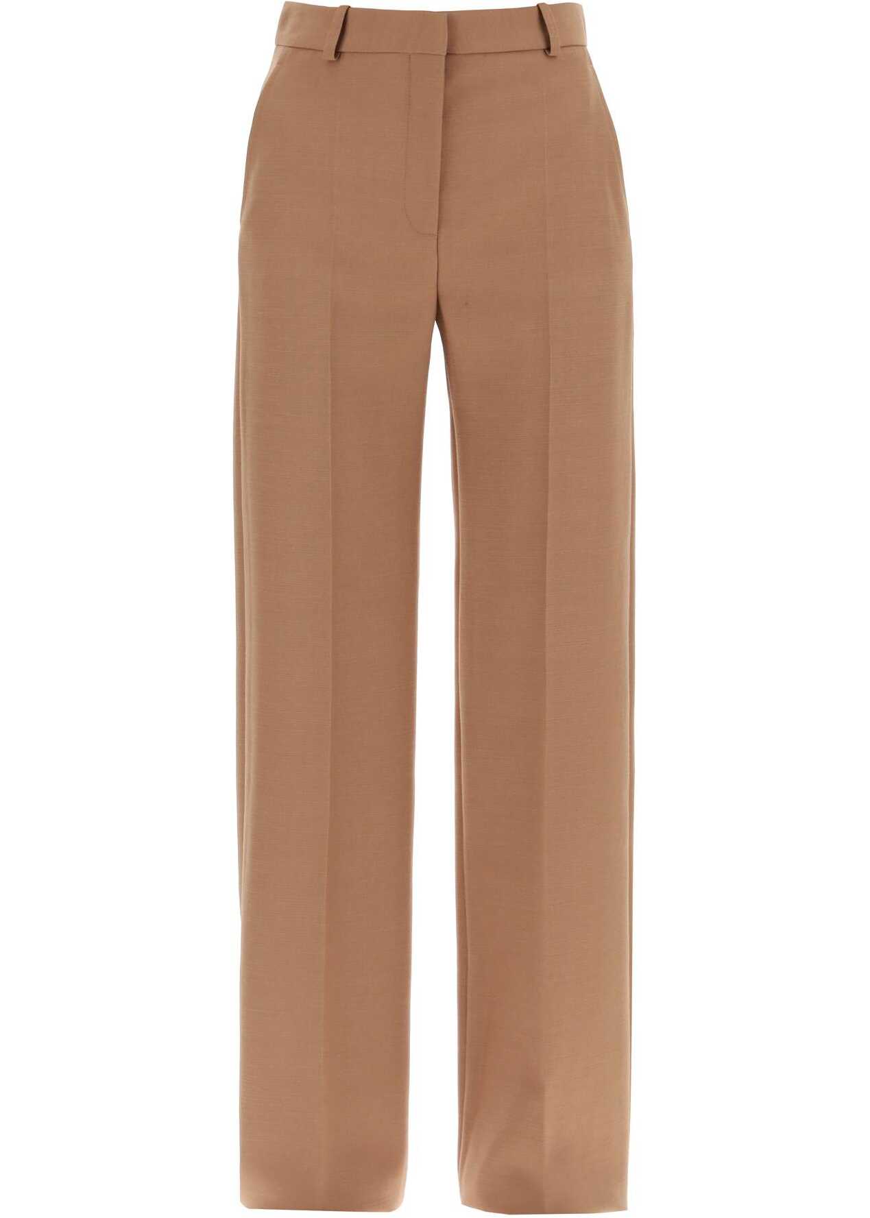 These Stella McCartney pants are made from responsibly sourced flamed wool fabric, with a straight and soft cut enhanced by pressed pleats on the front and back. The clean design features a zip and hook closure, belt loops, side French pockets, and a buttoned welt pocket at the back. Unlined. The model is 177 cm tall and wears size IT 38.