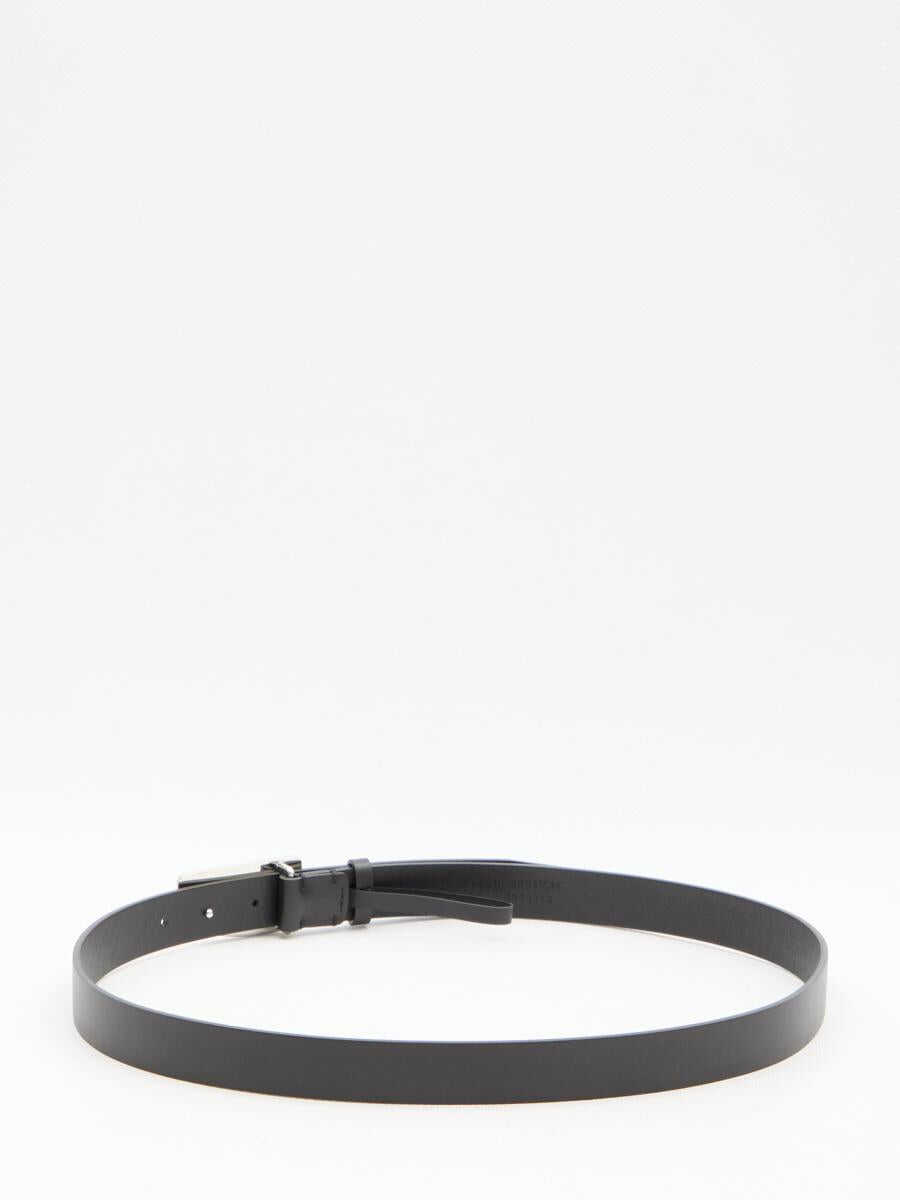 Shield Split belt in black smooth leather with Equestrian Knight Design buckle in silver-tone metal. Adjustable design.