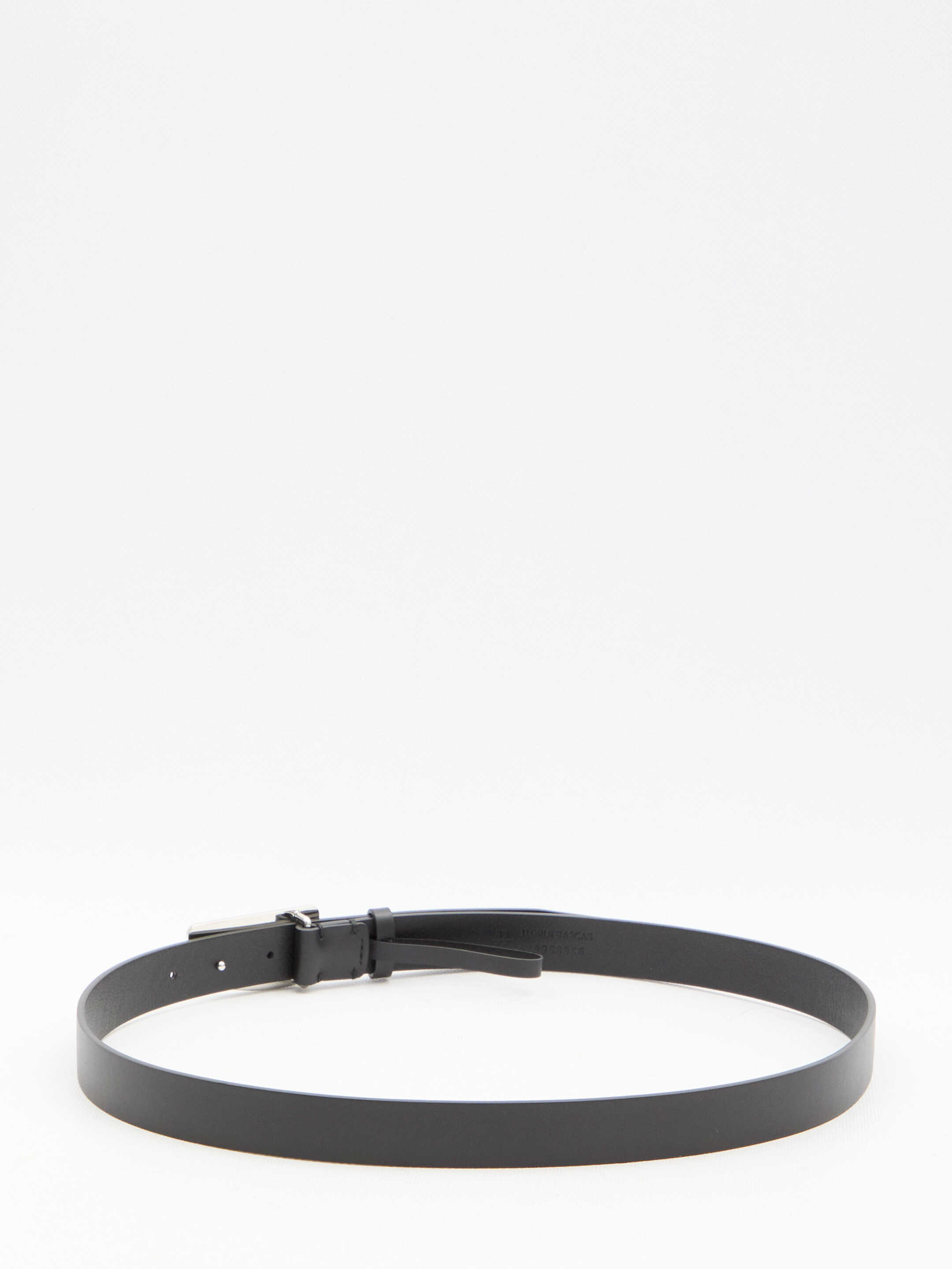 Shield Split belt in black smooth leather with Equestrian Knight Design buckle in silver-tone metal. Adjustable design.