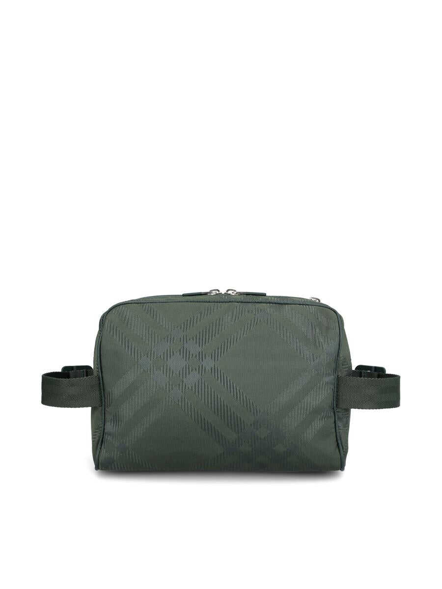 - Material: 78% polyamide, 22% polyester - Color: green - Interior polyamide lining - Other details: all-over Burberry Check pattern - Adjustable shoulder strap - Shoulder strap length: 120 cm - Zipper closure - Dust bag - Item number: 8083448B7325 - Size: 23 x 10 x 16 cm