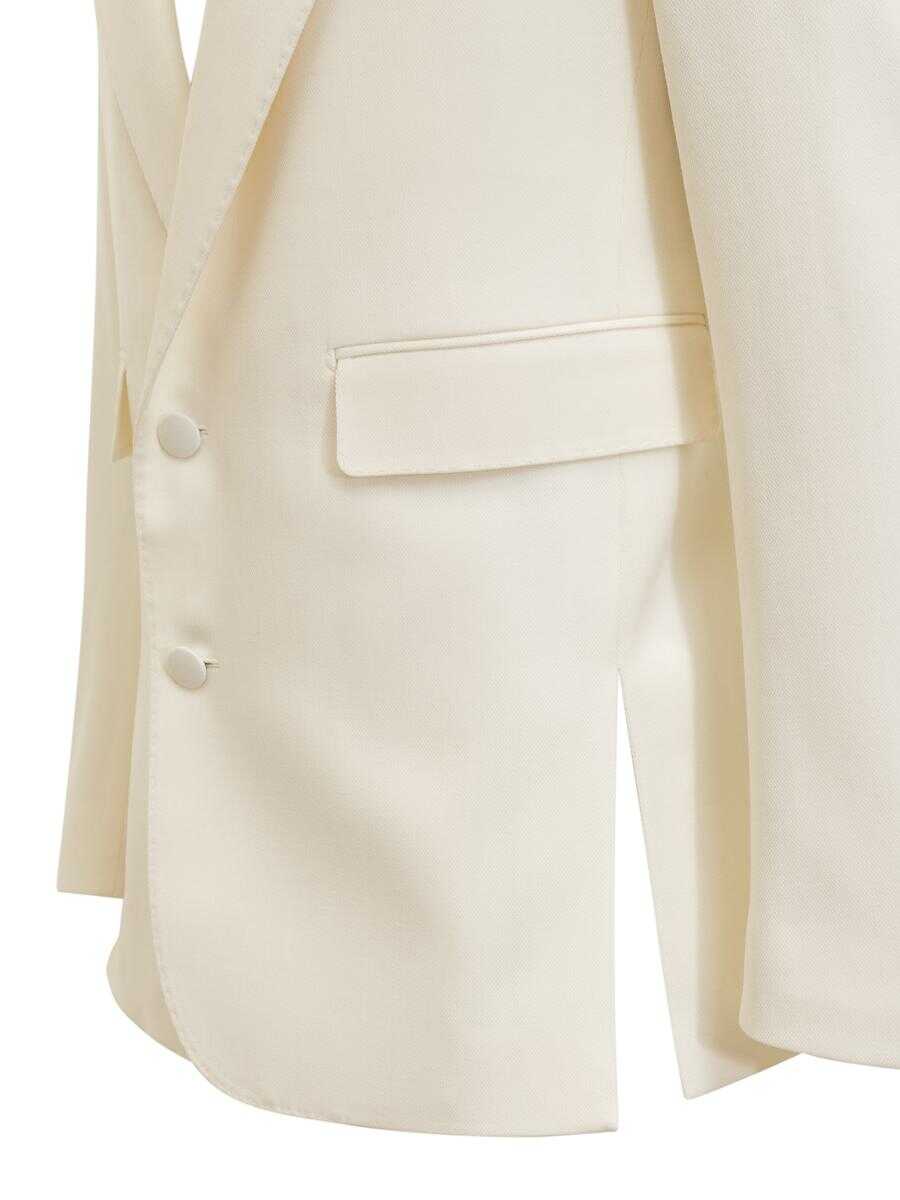 Long-sleeved jacket in virgin wool. Lapel collar. Single-breasted button closure. Cuffs with buttons. Breast pocket. Two flap pockets on front. Inside pockets. Spocco on sides.