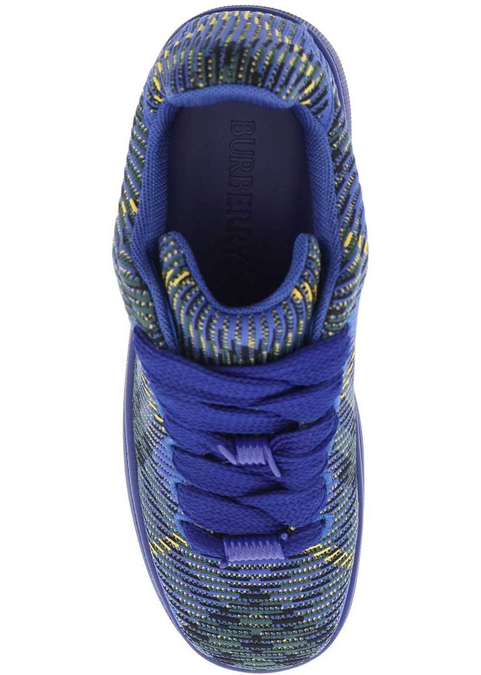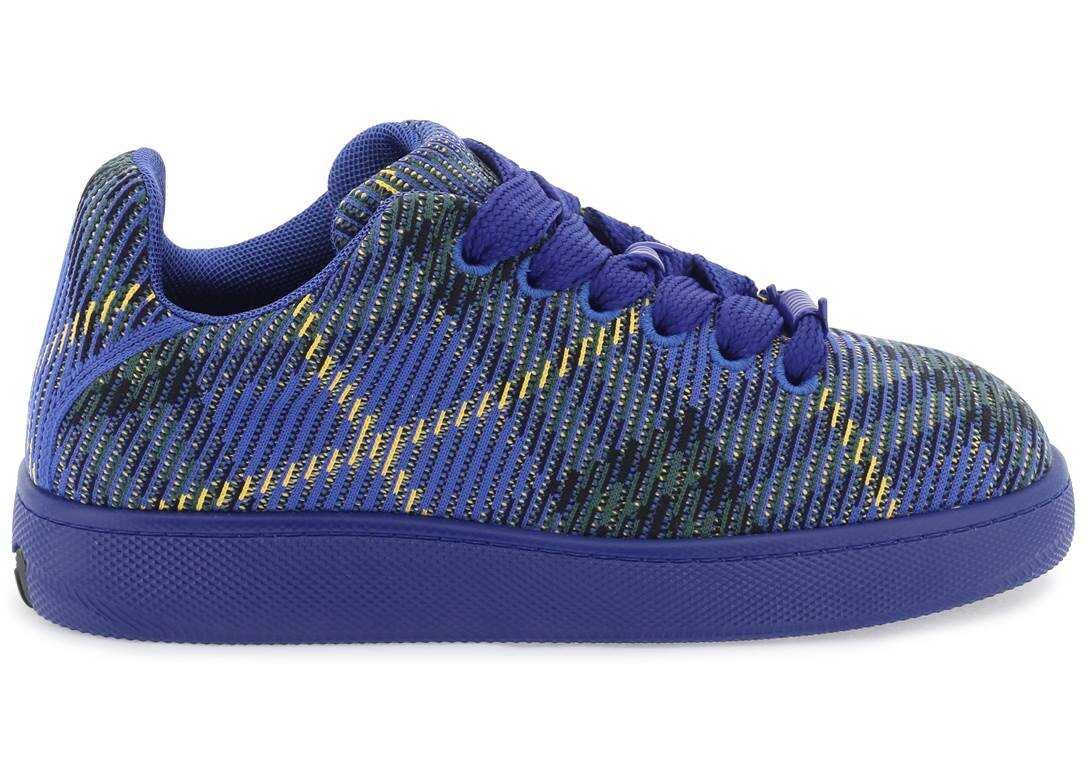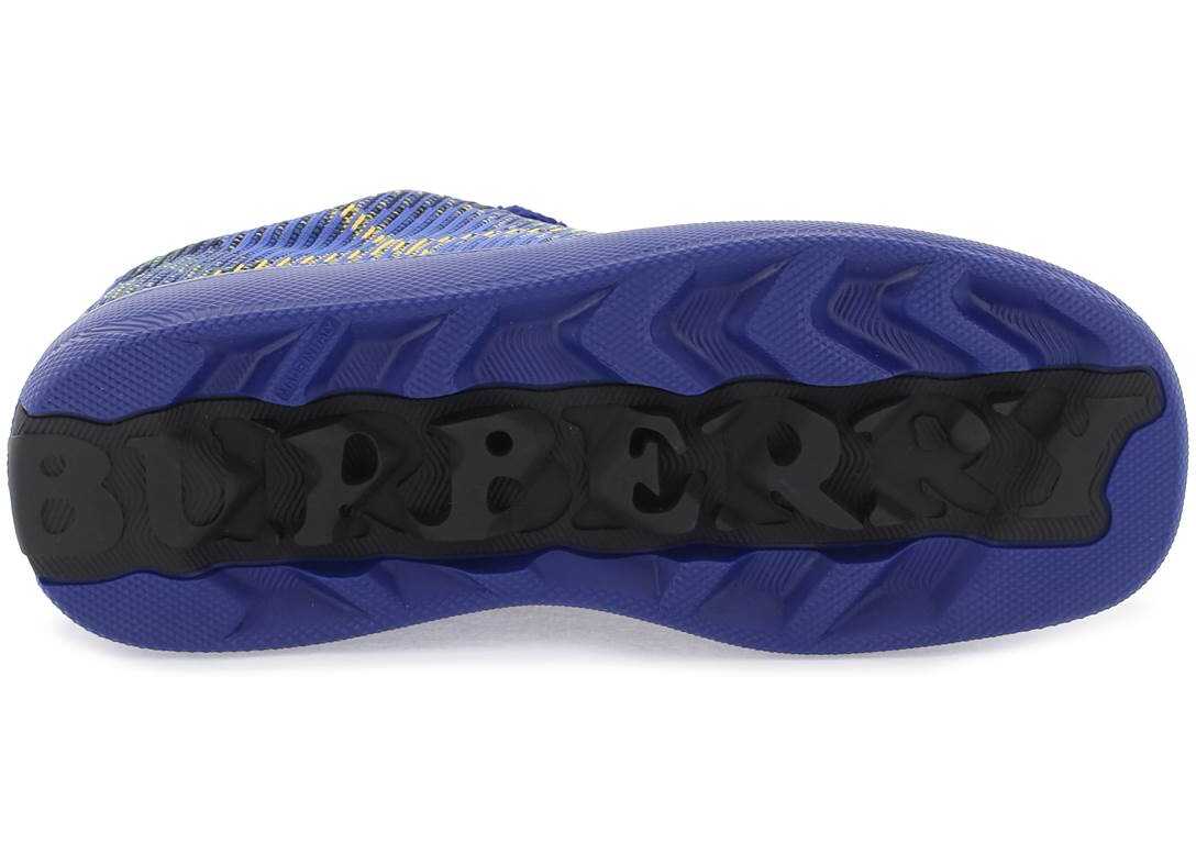 Burberry sneakers made of stretch nylon with a knitted Check pattern. Oversized laces embellished with enamel-coated barbed wire details, mesh lining with removable leather insole and molded rubber sole featuring the iconic Burberry archive lettering.
