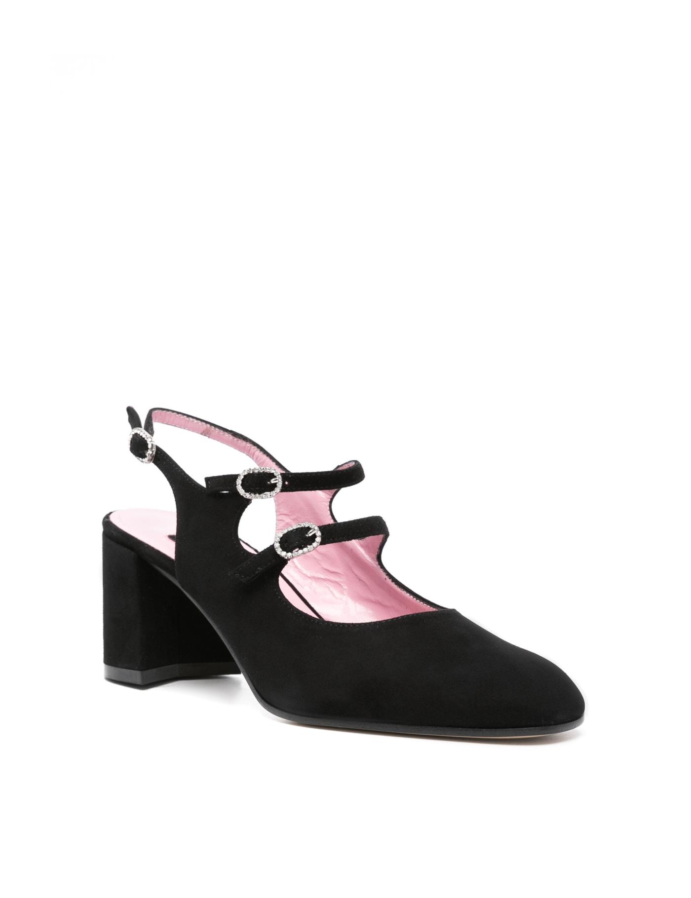 - buckle-fastening slingback strap and side buckle fastening with crystal embellishment