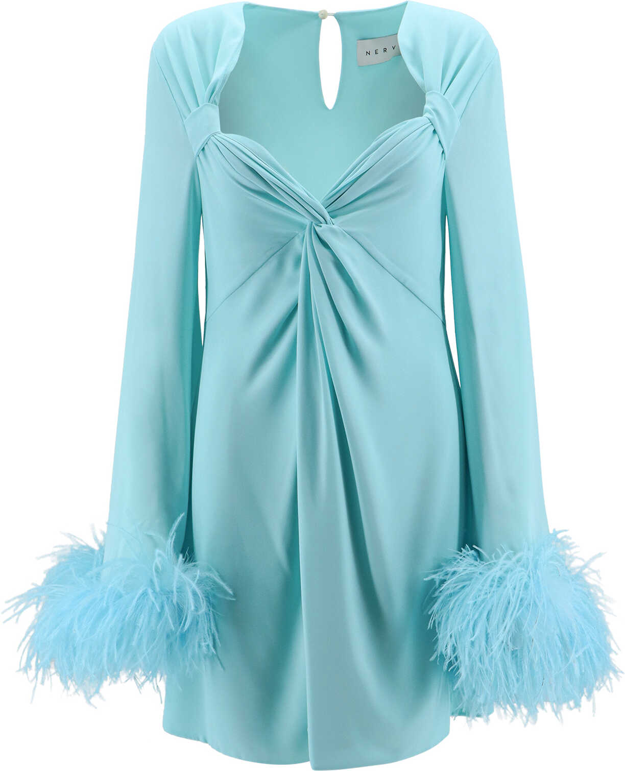 Dress with natural feathers with knot on the front