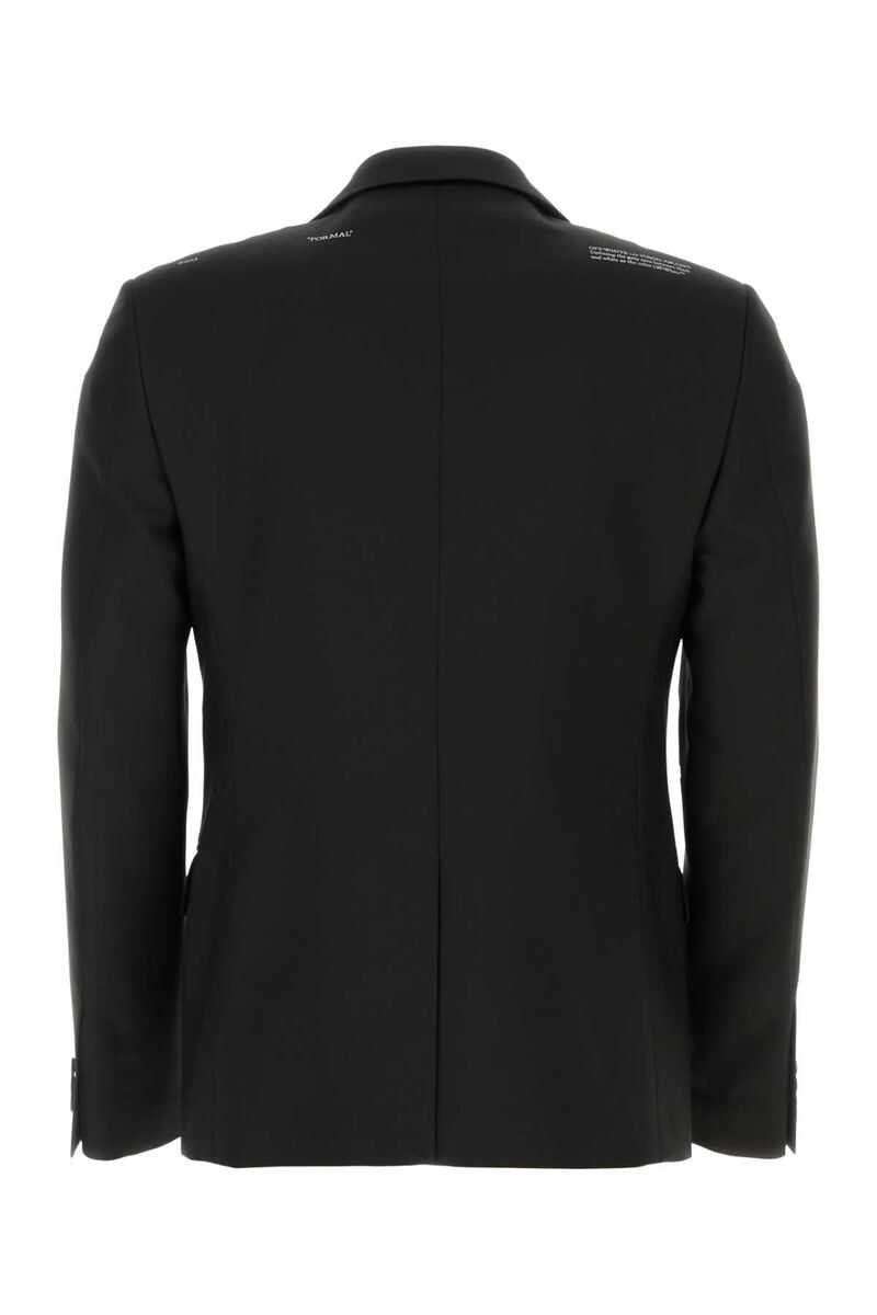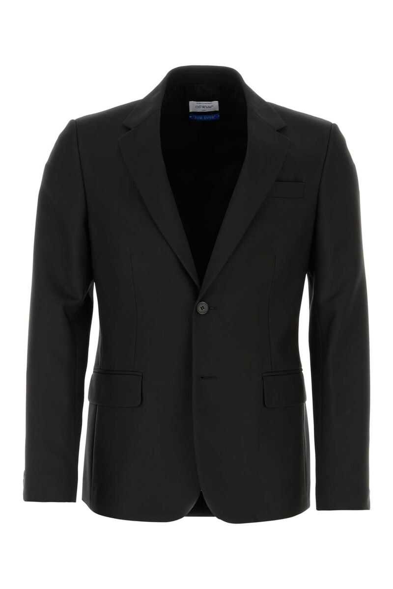 black twill weave notched lapels front button fastening logo-debossed buttons long sleeves buttoned cuffs chest welt pocket two front flap pockets American rear vent internal slip pocket straight hem full lining logo-jacquard lining