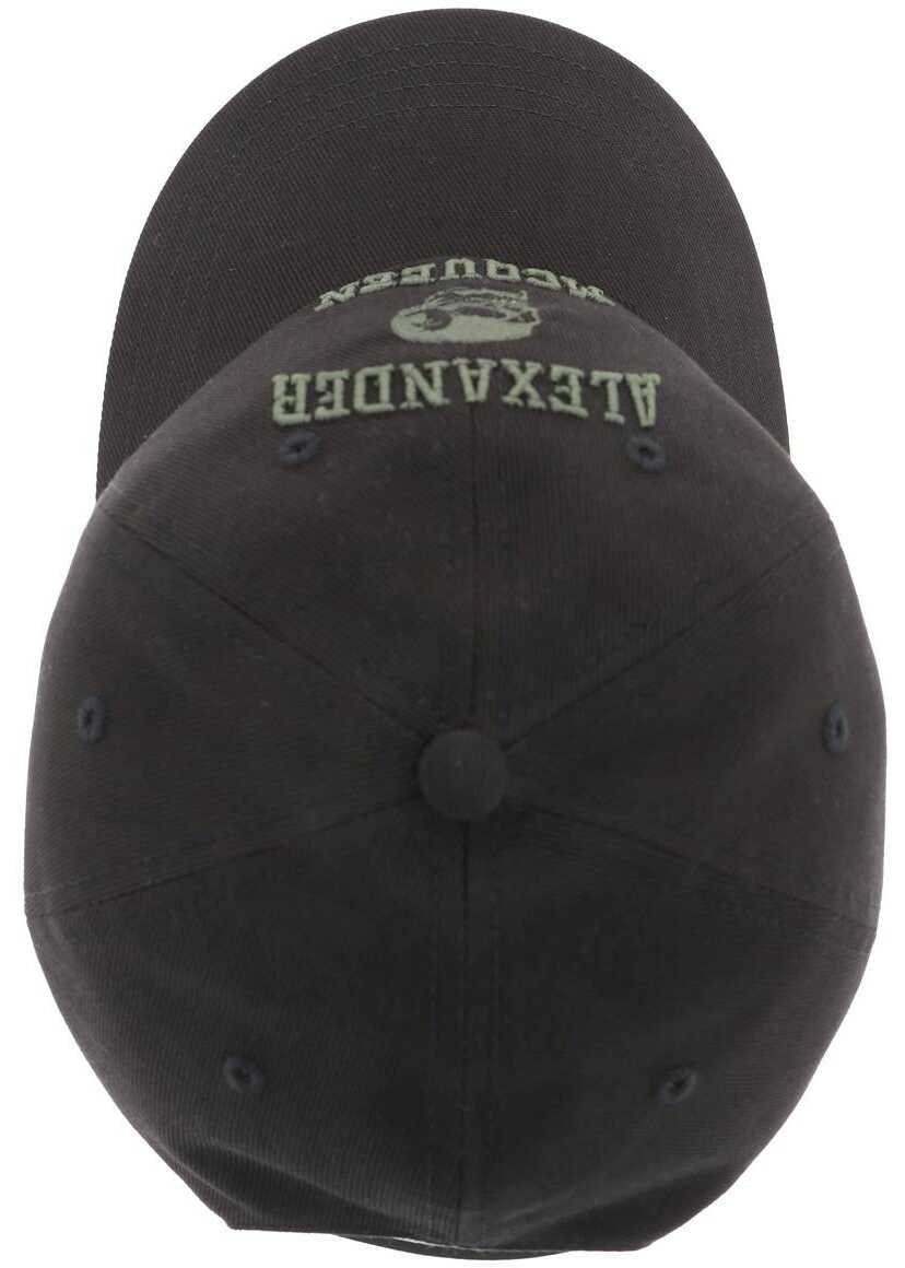 Crafted in cotton twill, this baseball cap from Alexander McQueen is embellished with a Varsity Skull motif embroidered at the front. It features a self-cover top button, embroidered ventilation eyelets, and cotton lining. A branded leather back strap completes the design, that is adjustable with a sliding buckle.